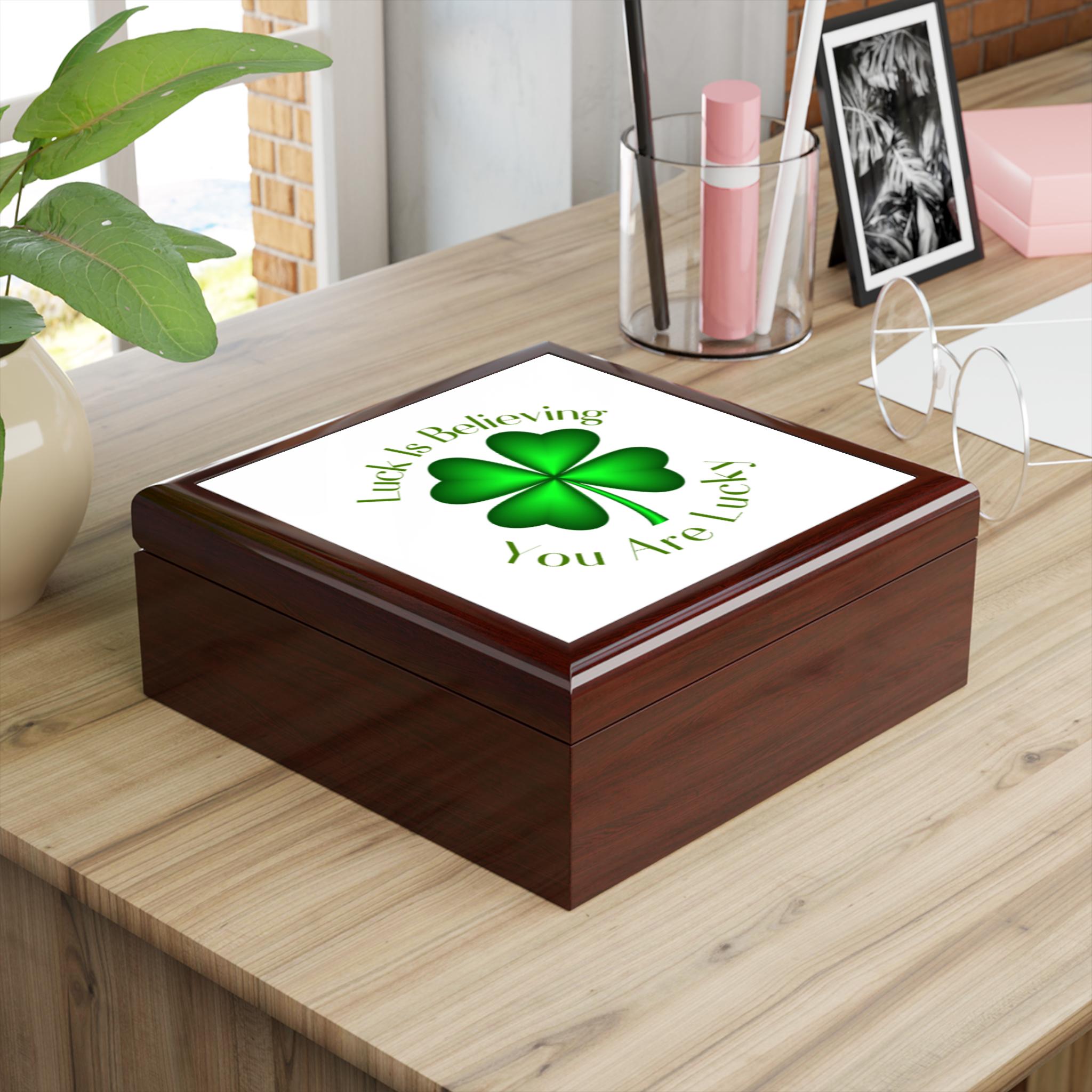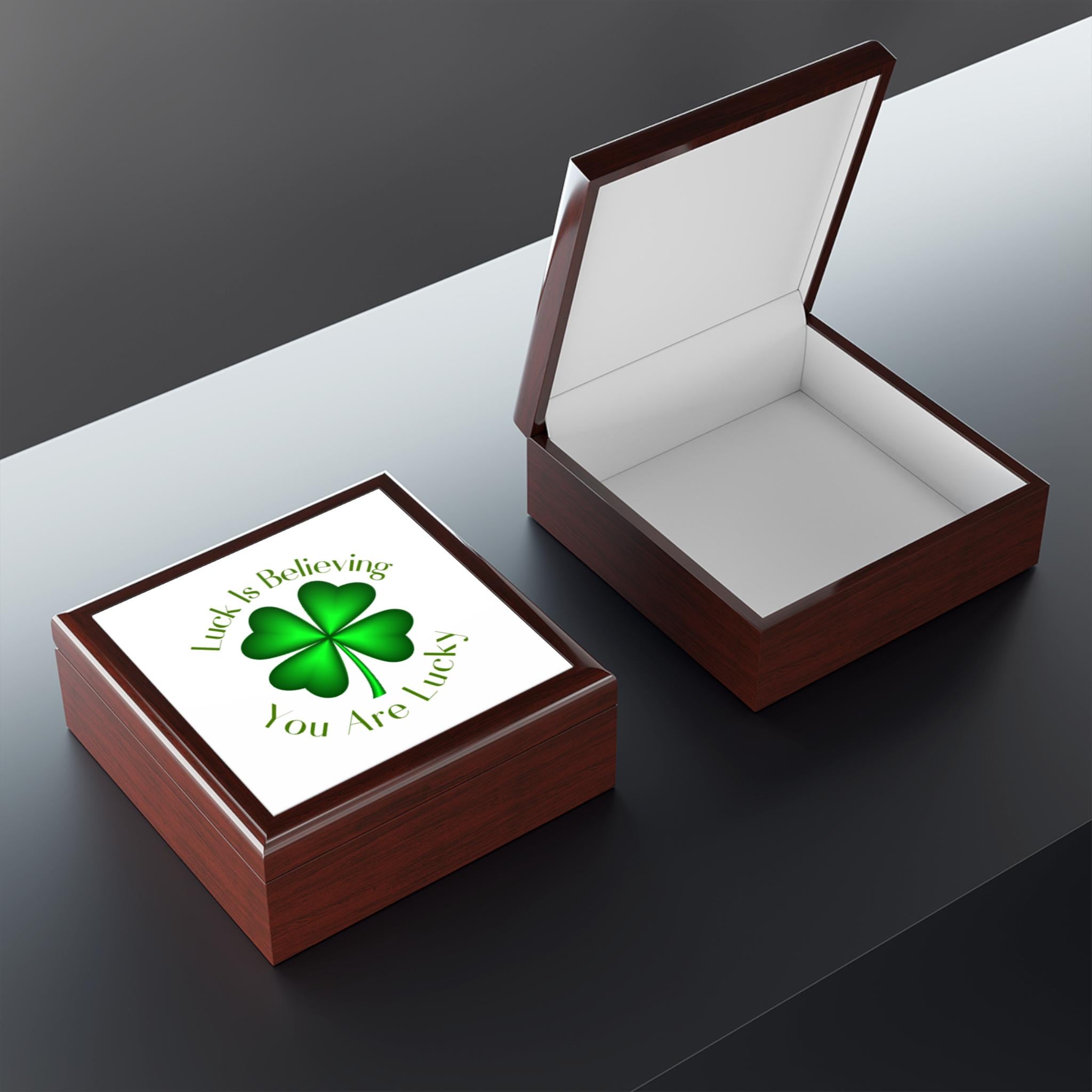 Four Leaf Clover Custom Jewelry Box | Luck Is Believing You Are Lucky-Shamrock Gift