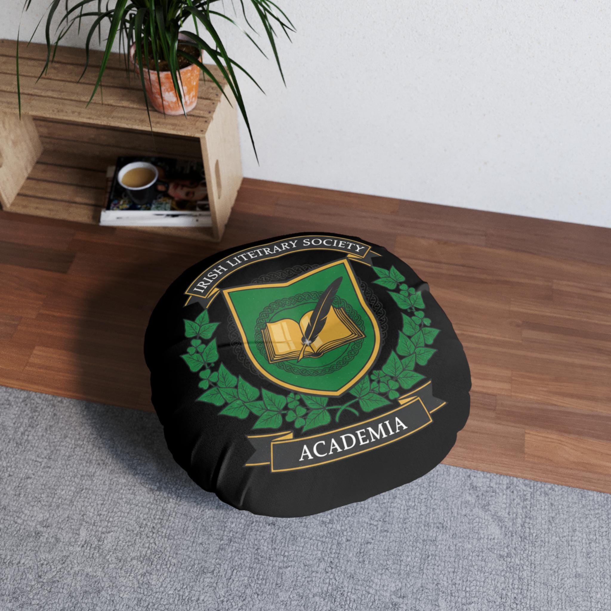 Irish Literary Society Academia Crest Tufted Floor Cozy Pillow