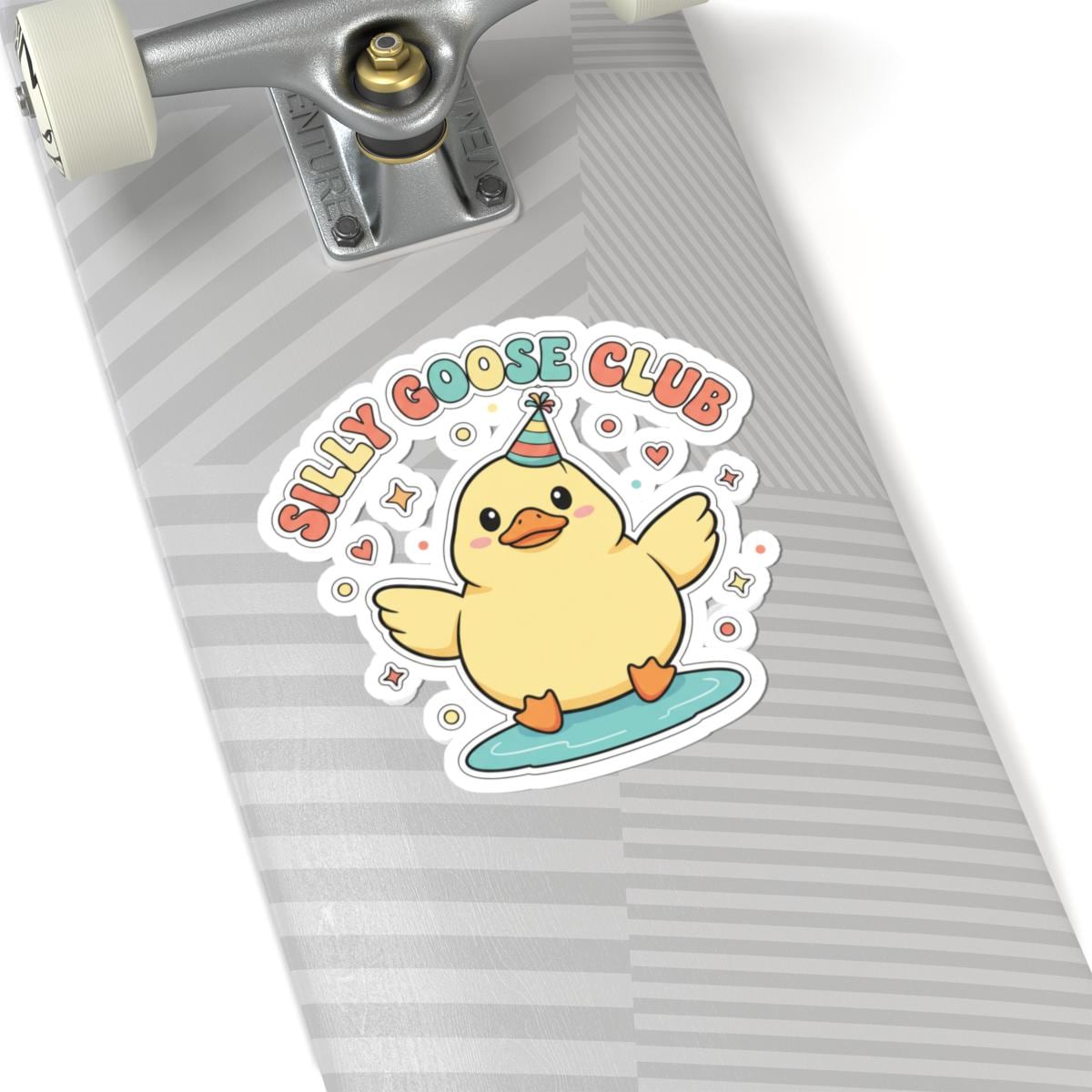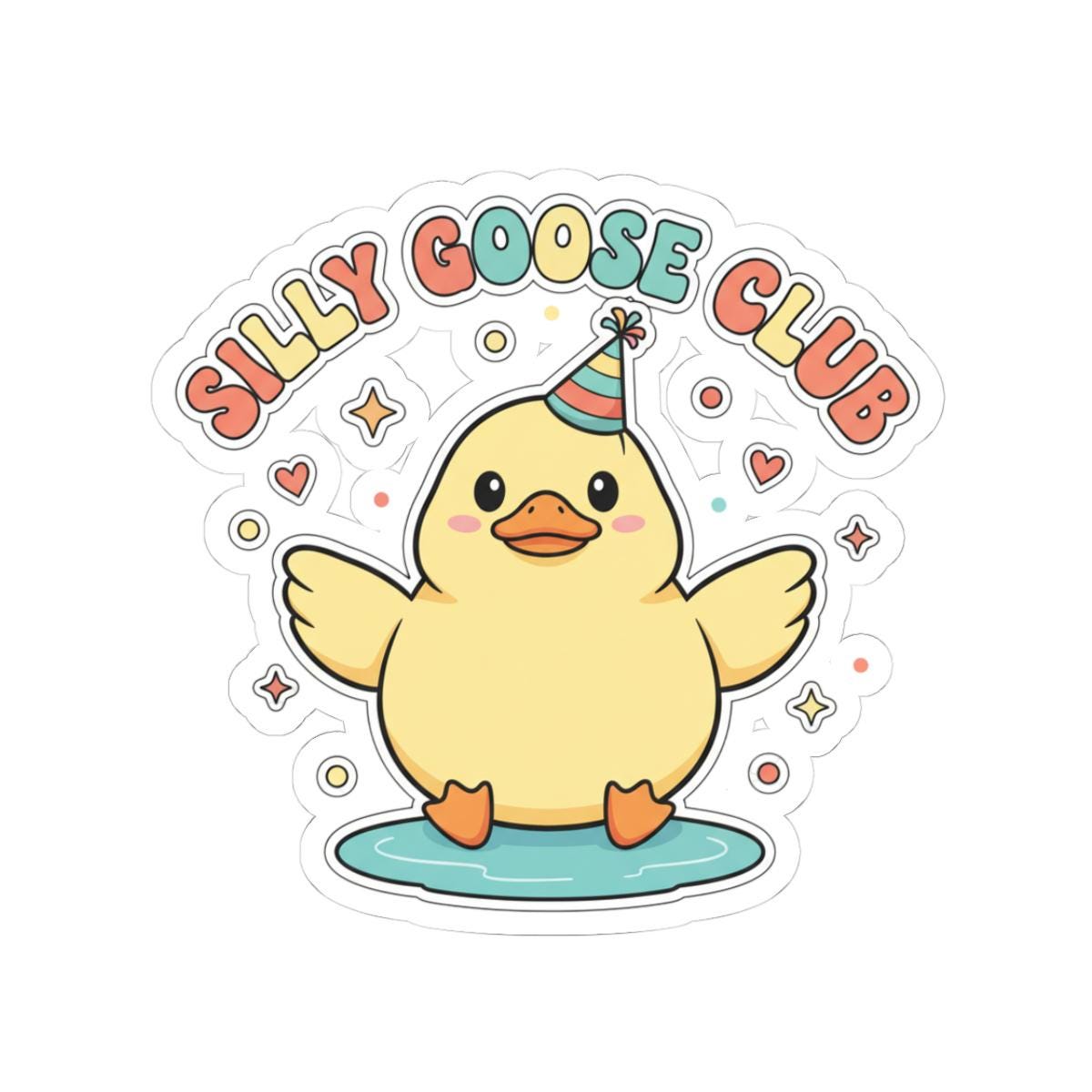 A soft, retro-inspired sticker featuring a chubby, cheerful goose character with a tiny party hat and rounded, pastel lettering reading “silly goose.” The artwork leans into wholesome meme humor with a vintage-illustration vibe — simple lines, warm pastels, and a playful one-liner that reads instantly on laptops, water bottles, and notebooks. It connects to the “Silly Goose” internet-humor trend by offering an approachable, shareable visual joke that feels cozy and lighthearted for parents, friends, and meme-loving shoppers.