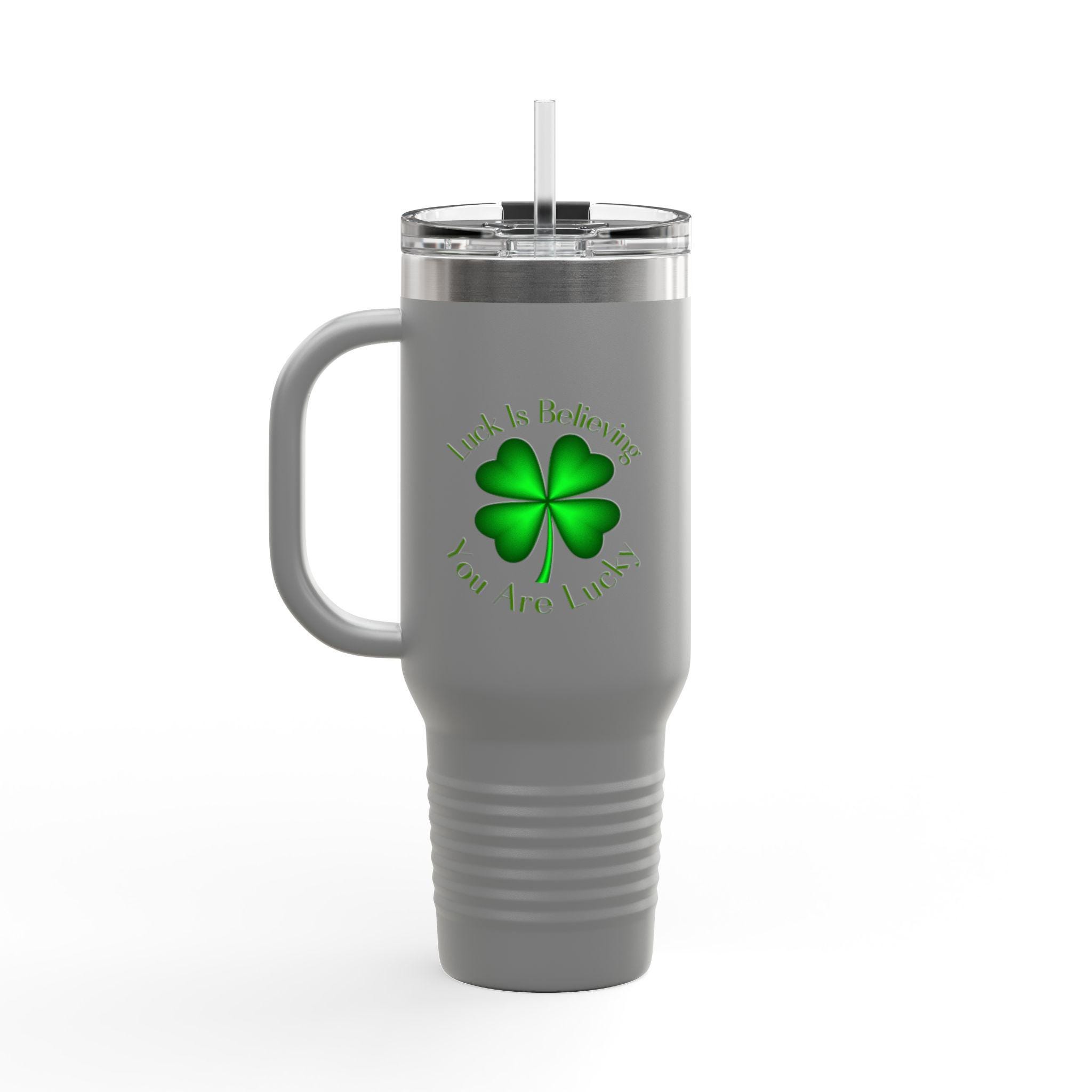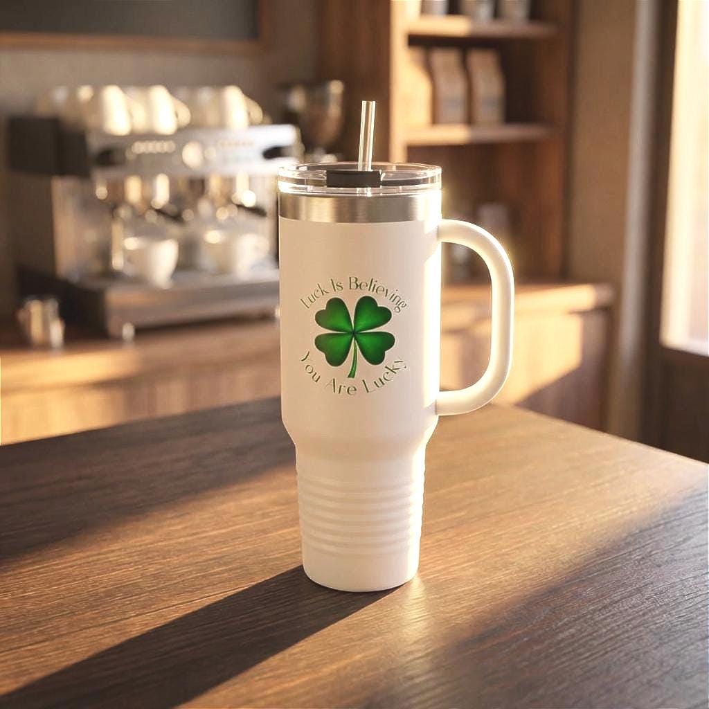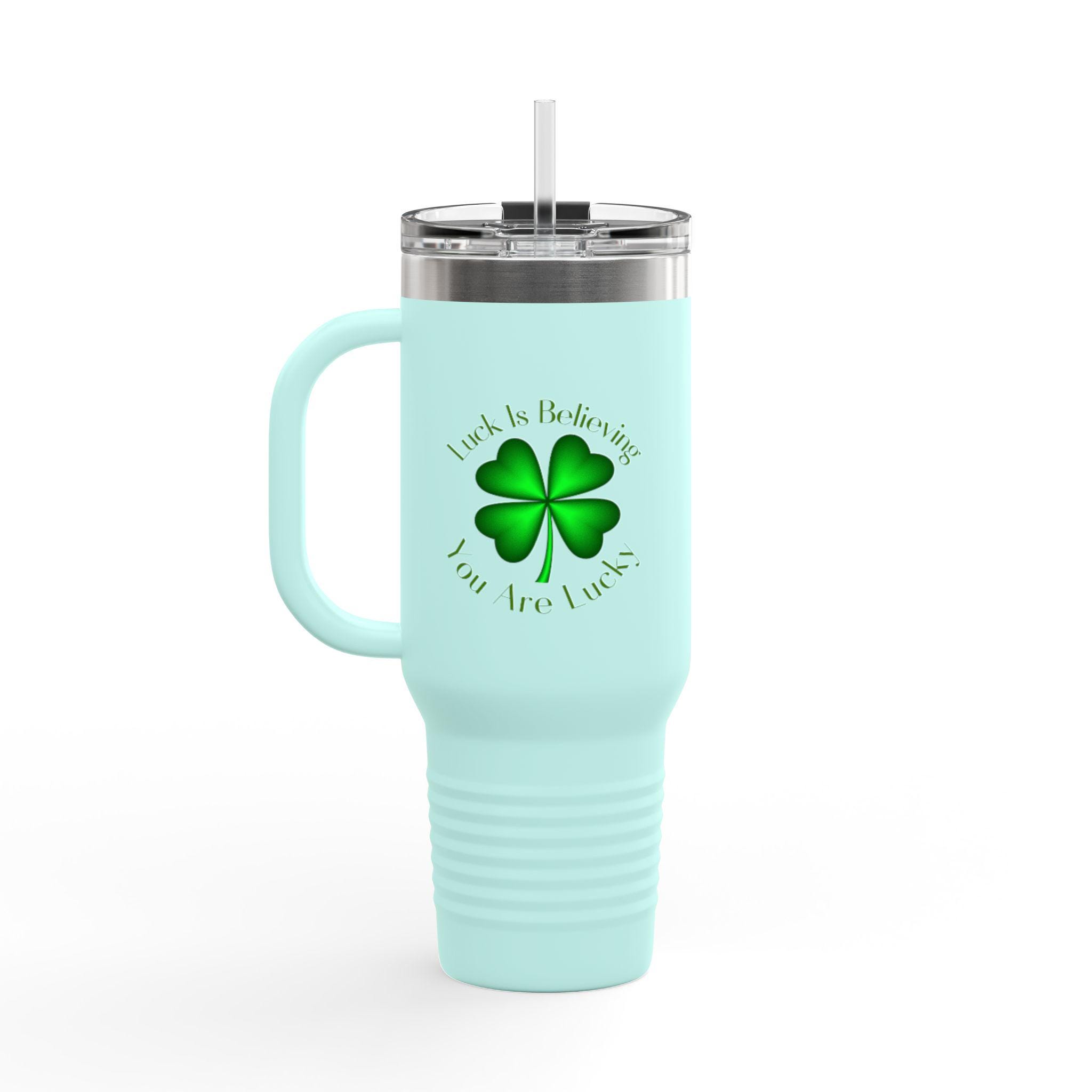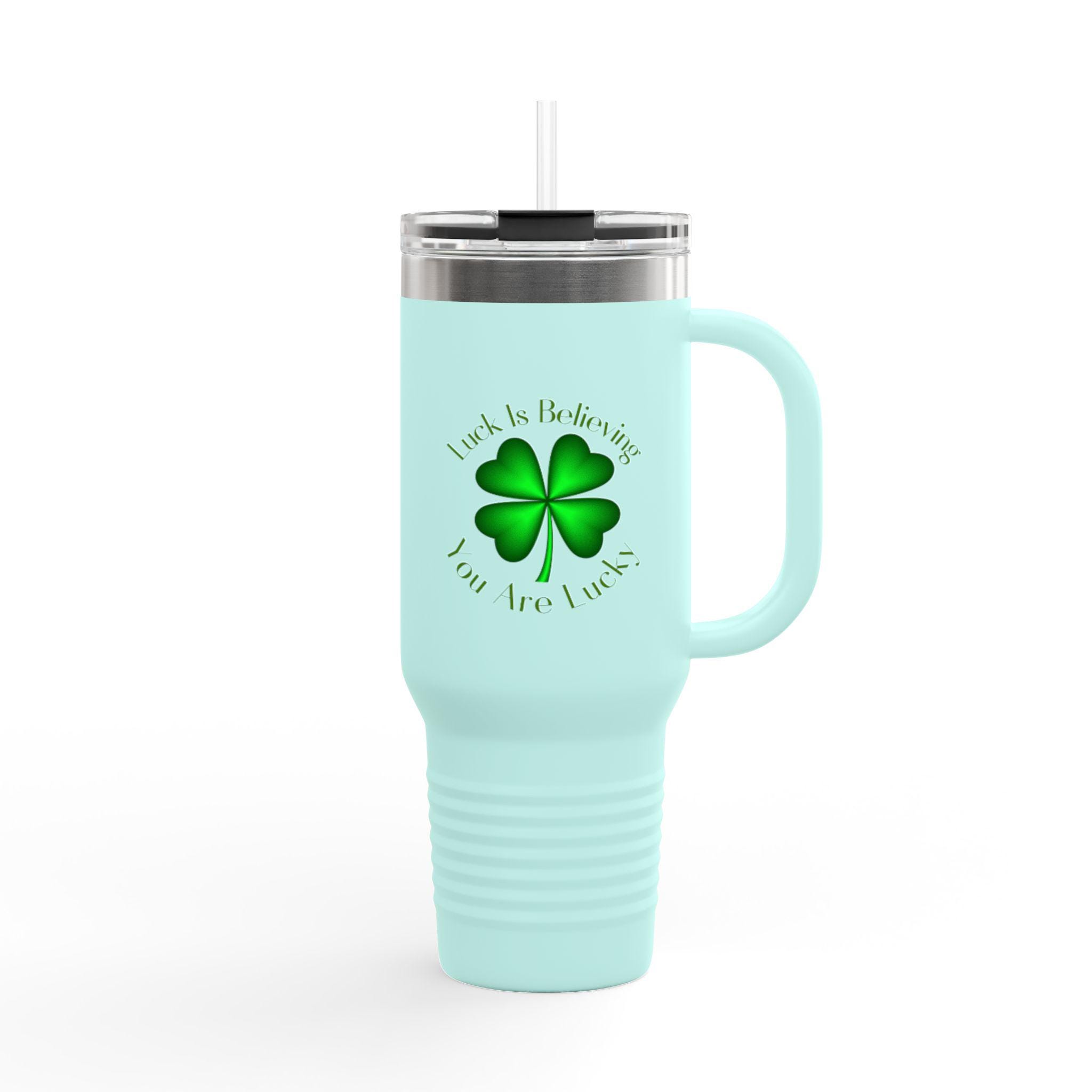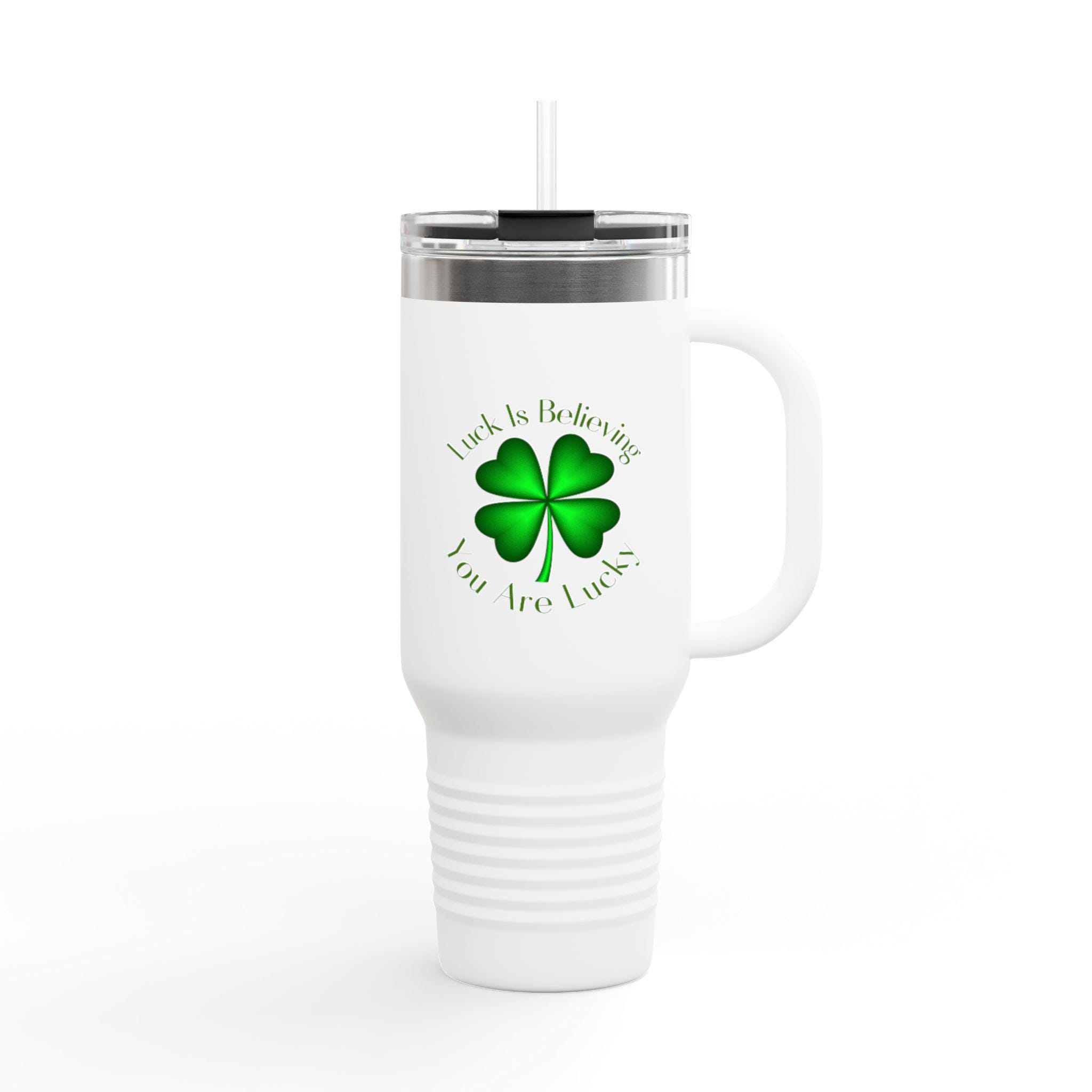Four Leaf Clover Luck is Believing Travel Mug, 40oz Insulated Tumbler -lucky charm design