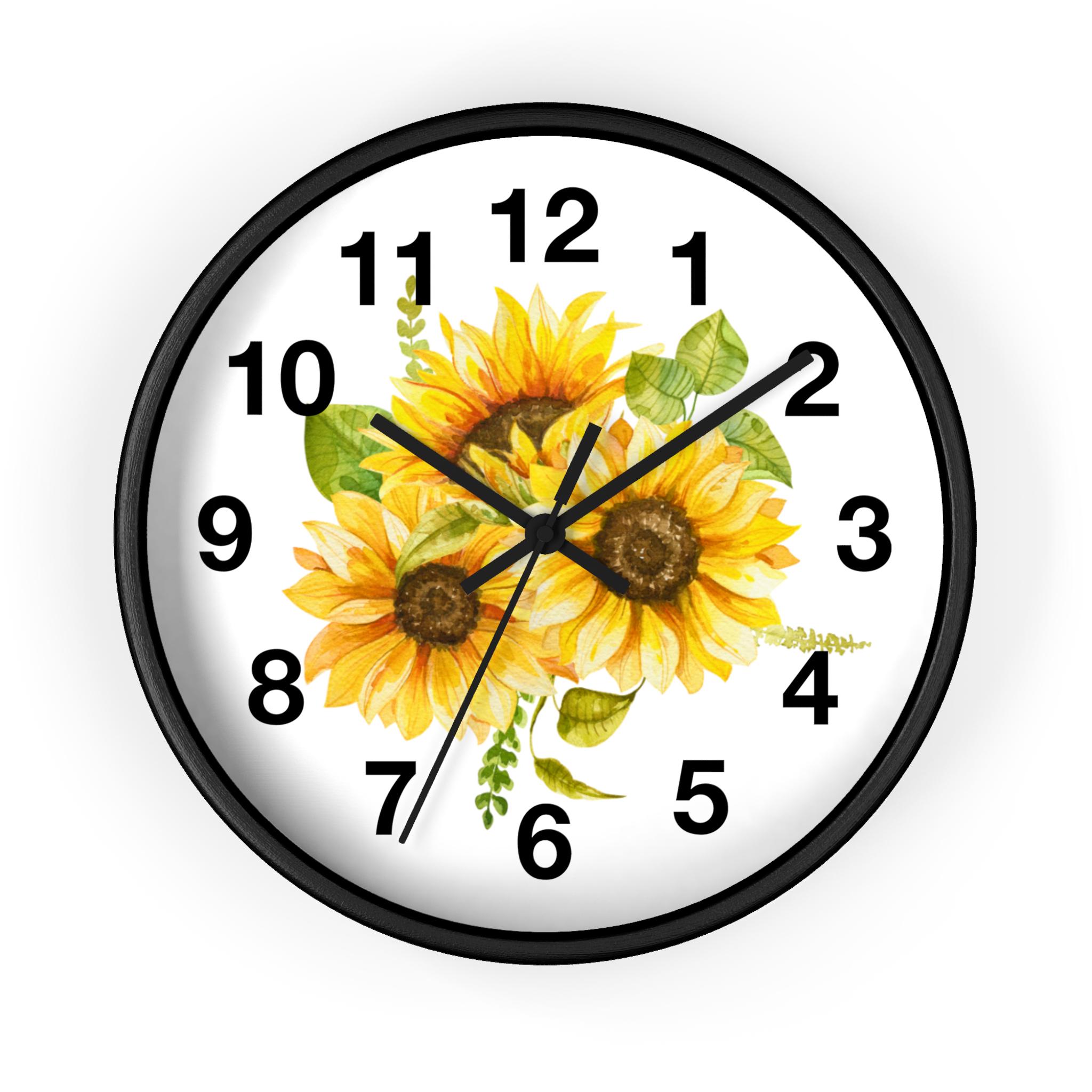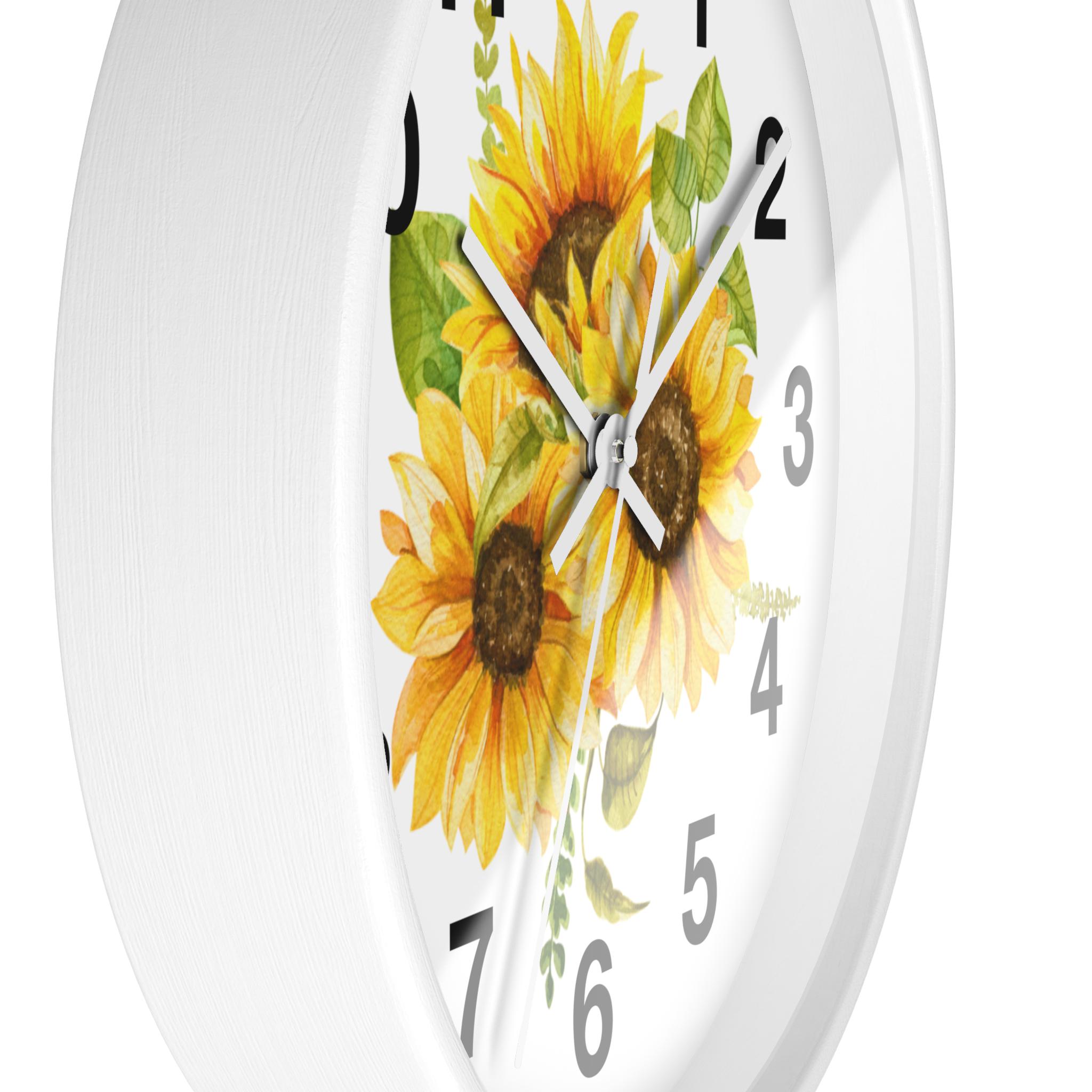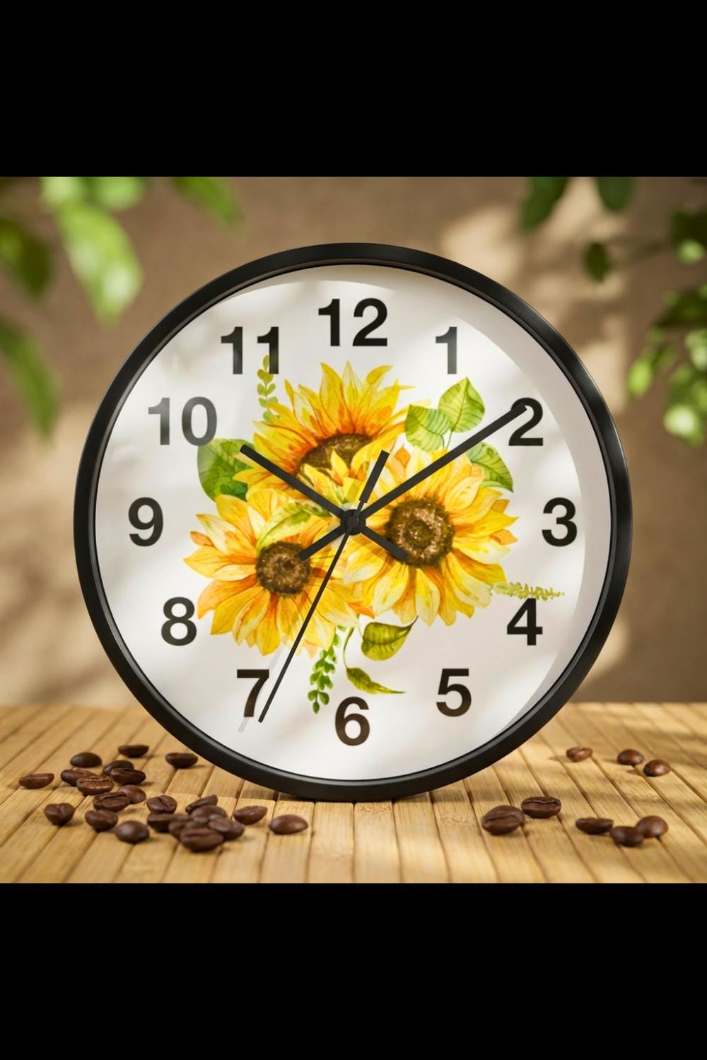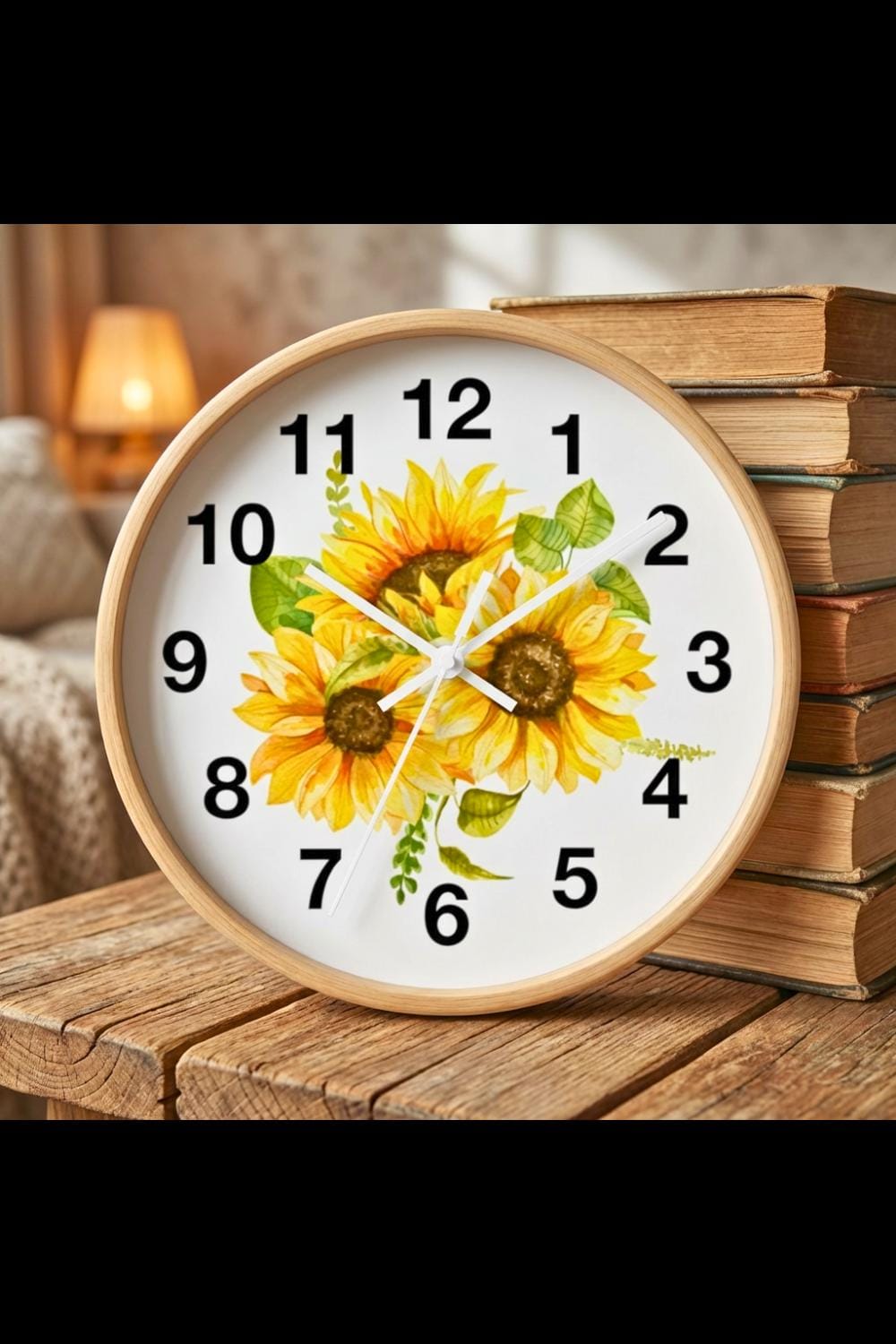 Sunlit sunflowers spill across a warm wooden face, each bloom frozen at a gentle moment so time feels slower and kinder. This 10" wall clock brings a quiet, botanical energy to kitchens, sunrooms, or cozy nooks — the kind of piece that hums along while you brew coffee, flip through a recipe, or sit by a window with a book. The silent mechanism keeps the room calm; the bright, high-definition print makes the flowers pop against your wall. Lightweight and ready to hang, it blends handcrafted wood warmth with crisp plexiglass clarity to become part of your everyday rhythm, especially in homes that celebrate seasonal gatherings or relaxed weekend mornings.