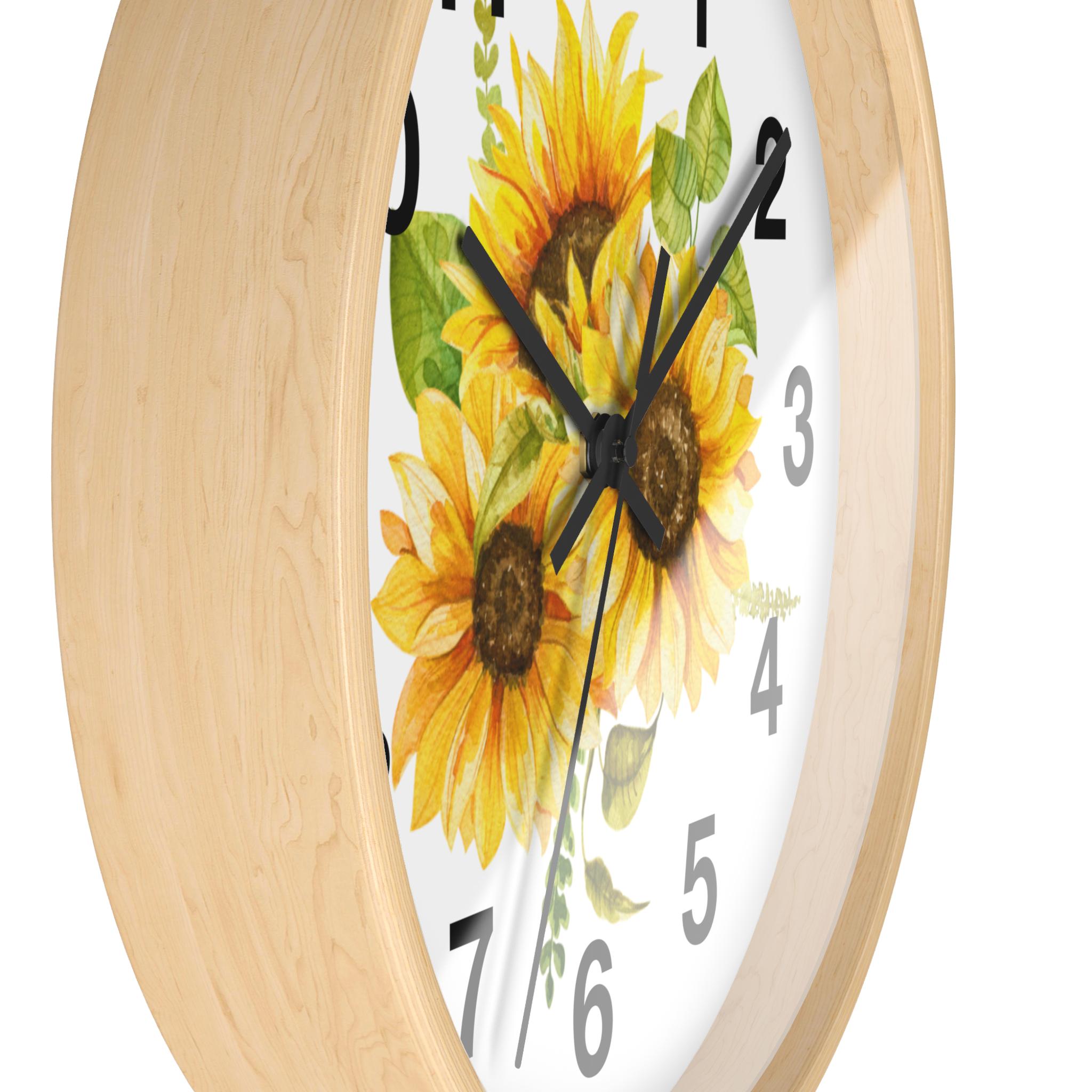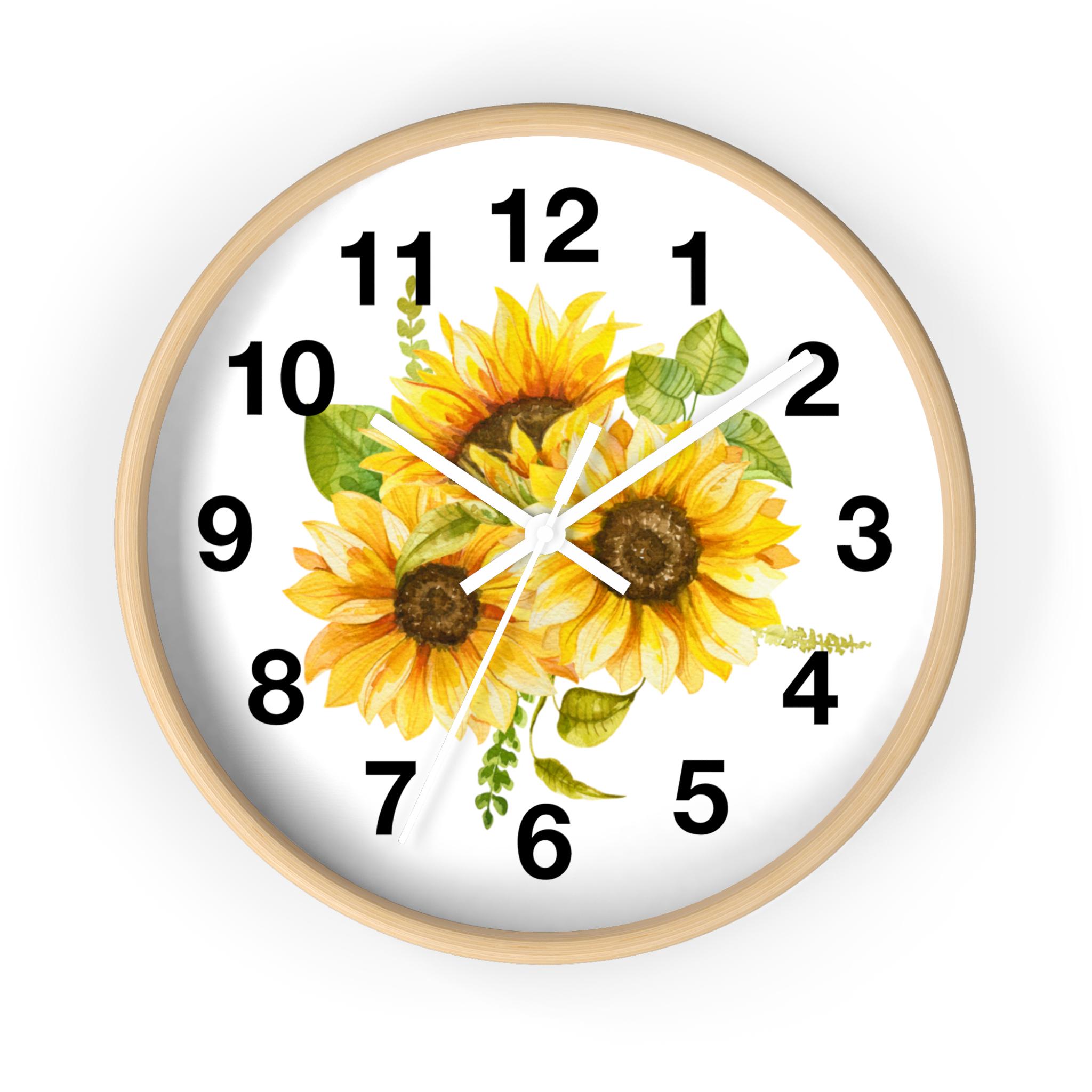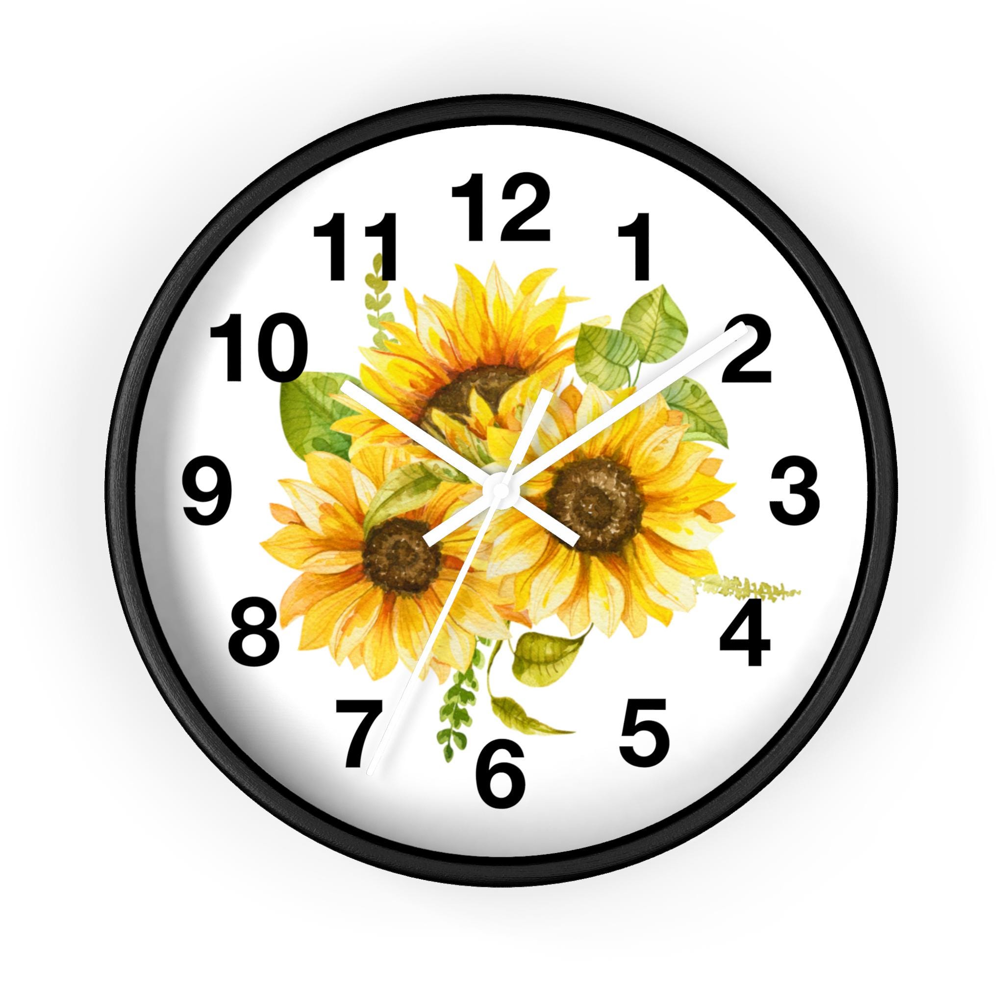 Sunlit sunflowers spill across a warm wooden face, each bloom frozen at a gentle moment so time feels slower and kinder. This 10" wall clock brings a quiet, botanical energy to kitchens, sunrooms, or cozy nooks — the kind of piece that hums along while you brew coffee, flip through a recipe, or sit by a window with a book. The silent mechanism keeps the room calm; the bright, high-definition print makes the flowers pop against your wall. Lightweight and ready to hang, it blends handcrafted wood warmth with crisp plexiglass clarity to become part of your everyday rhythm, especially in homes that celebrate seasonal gatherings or relaxed weekend mornings.