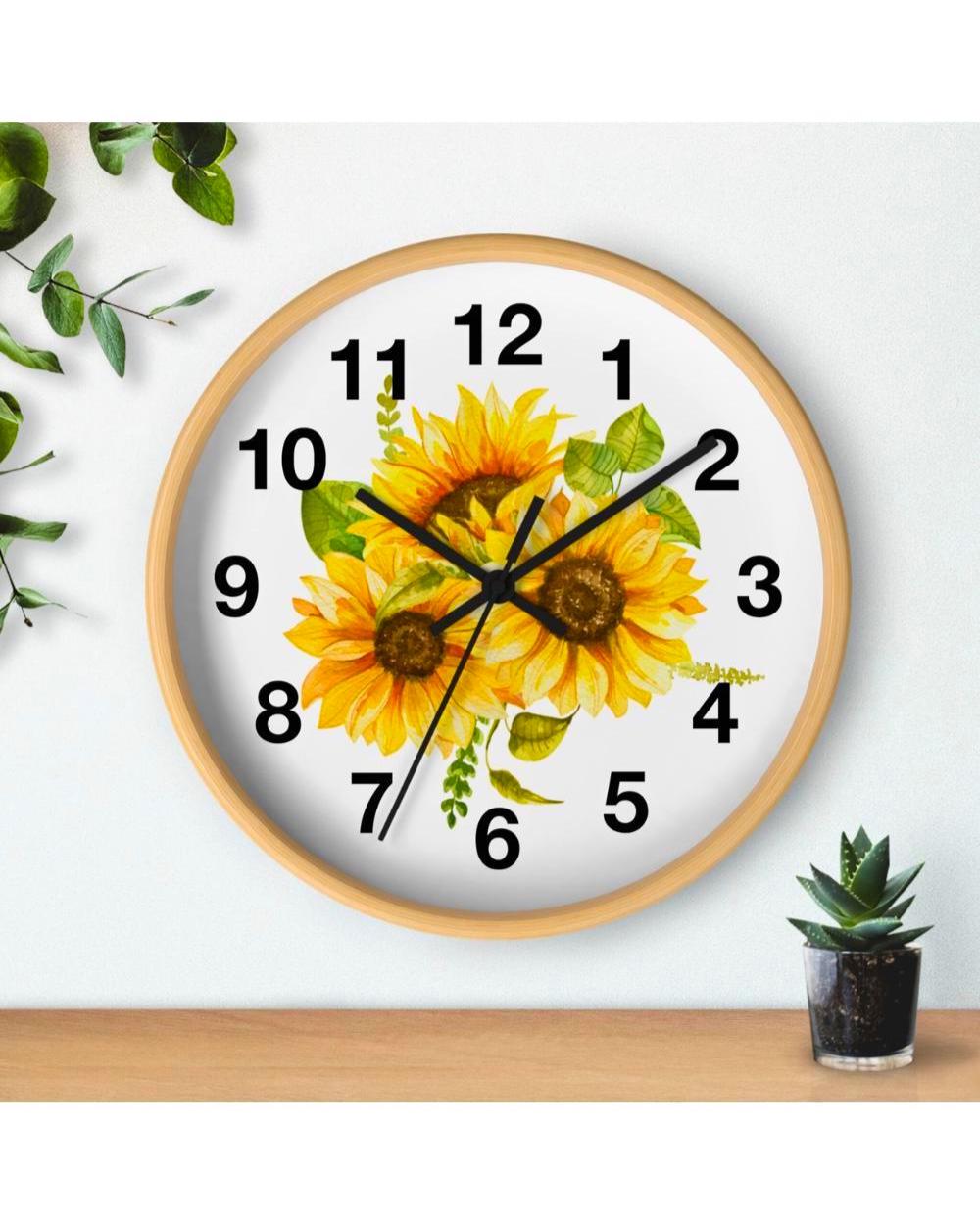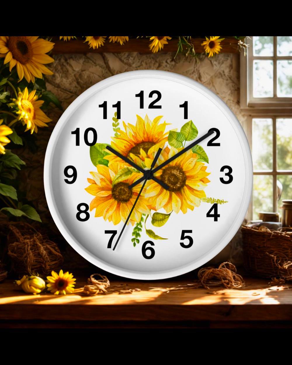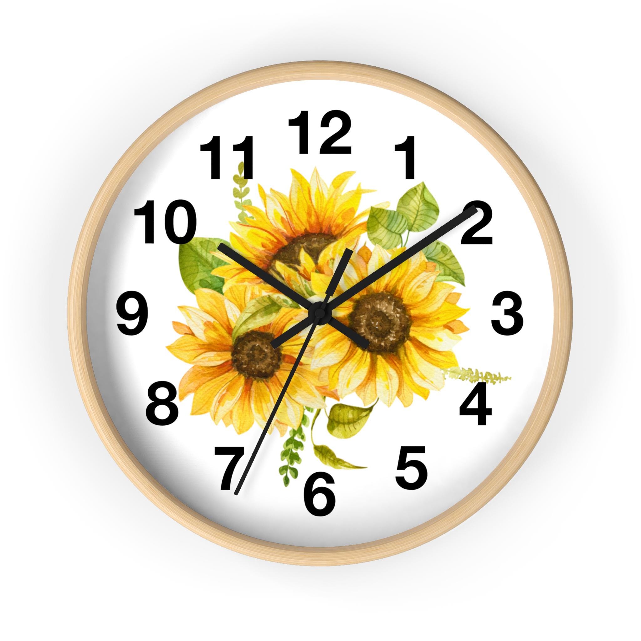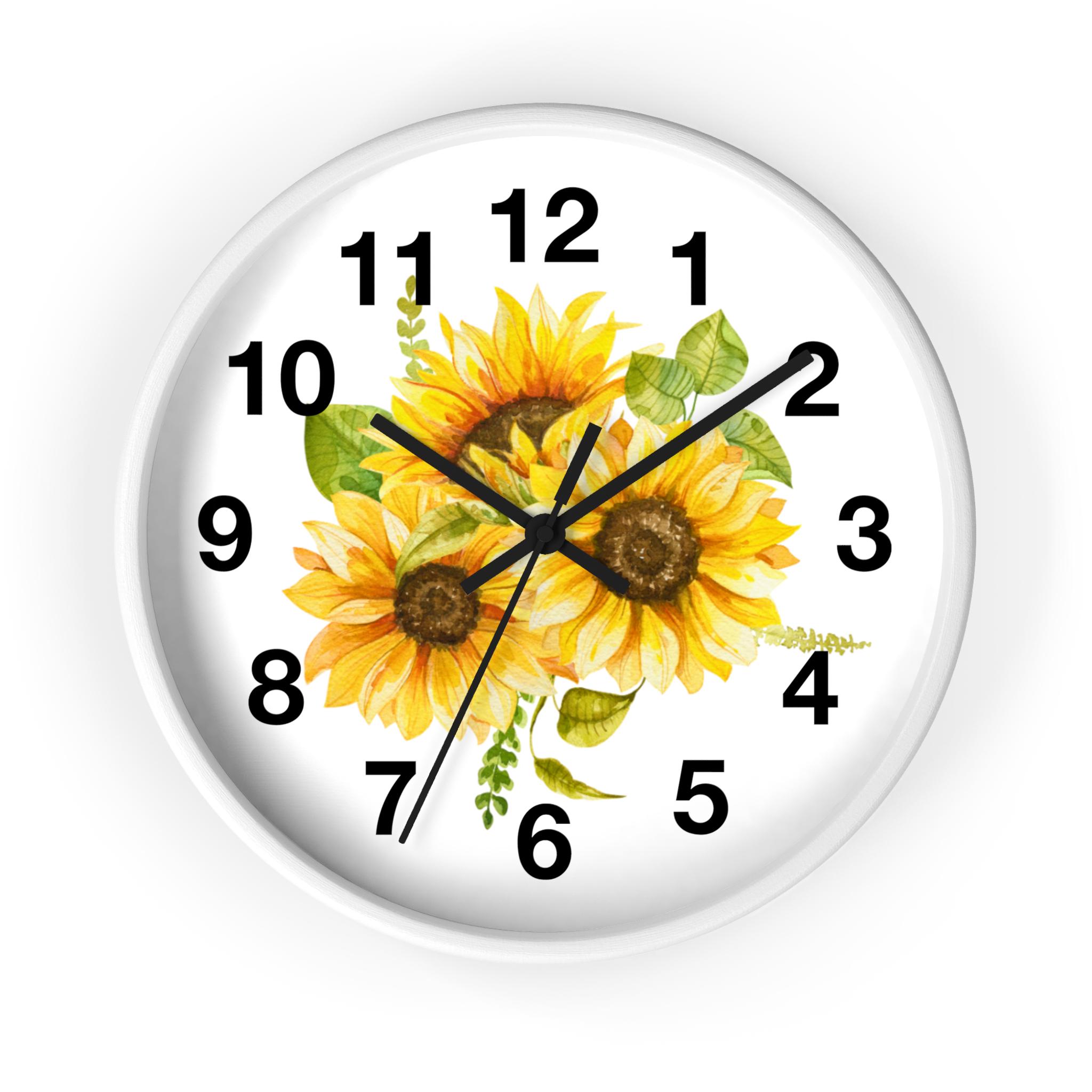 Sunlit sunflowers spill across a warm wooden face, each bloom frozen at a gentle moment so time feels slower and kinder. This 10" wall clock brings a quiet, botanical energy to kitchens, sunrooms, or cozy nooks — the kind of piece that hums along while you brew coffee, flip through a recipe, or sit by a window with a book. The silent mechanism keeps the room calm; the bright, high-definition print makes the flowers pop against your wall. Lightweight and ready to hang, it blends handcrafted wood warmth with crisp plexiglass clarity to become part of your everyday rhythm, especially in homes that celebrate seasonal gatherings or relaxed weekend mornings.