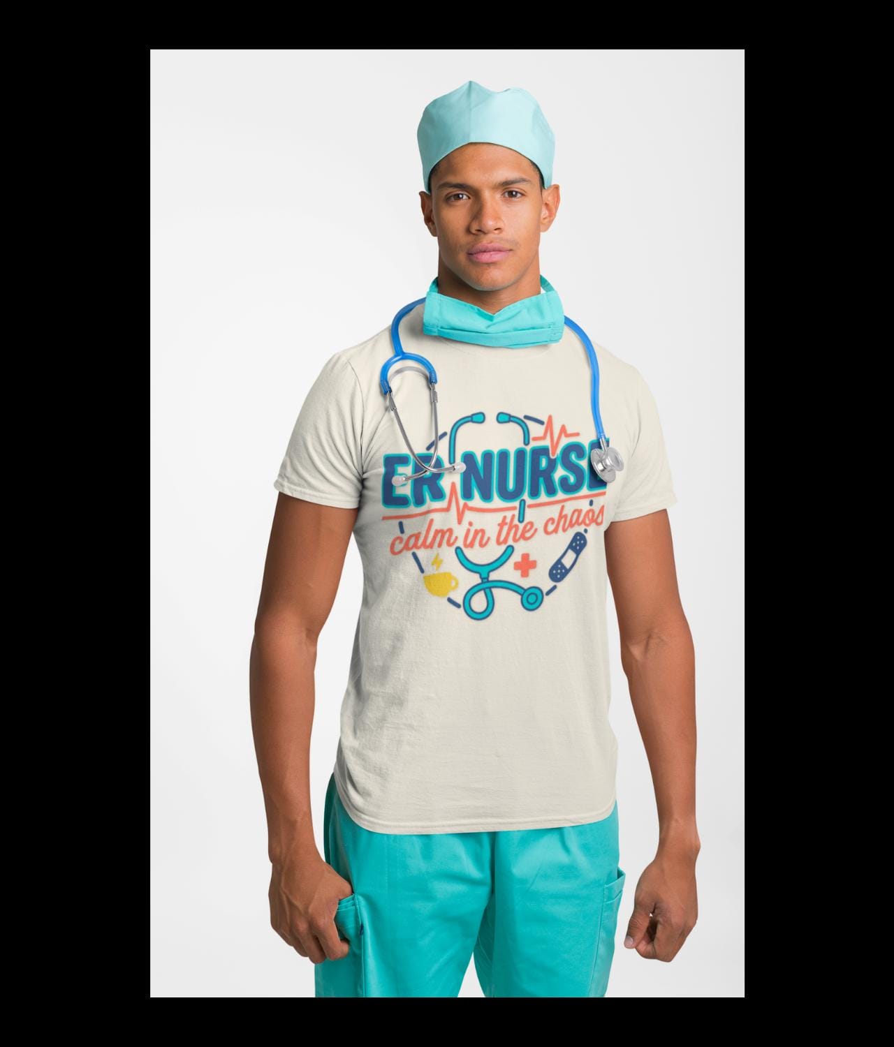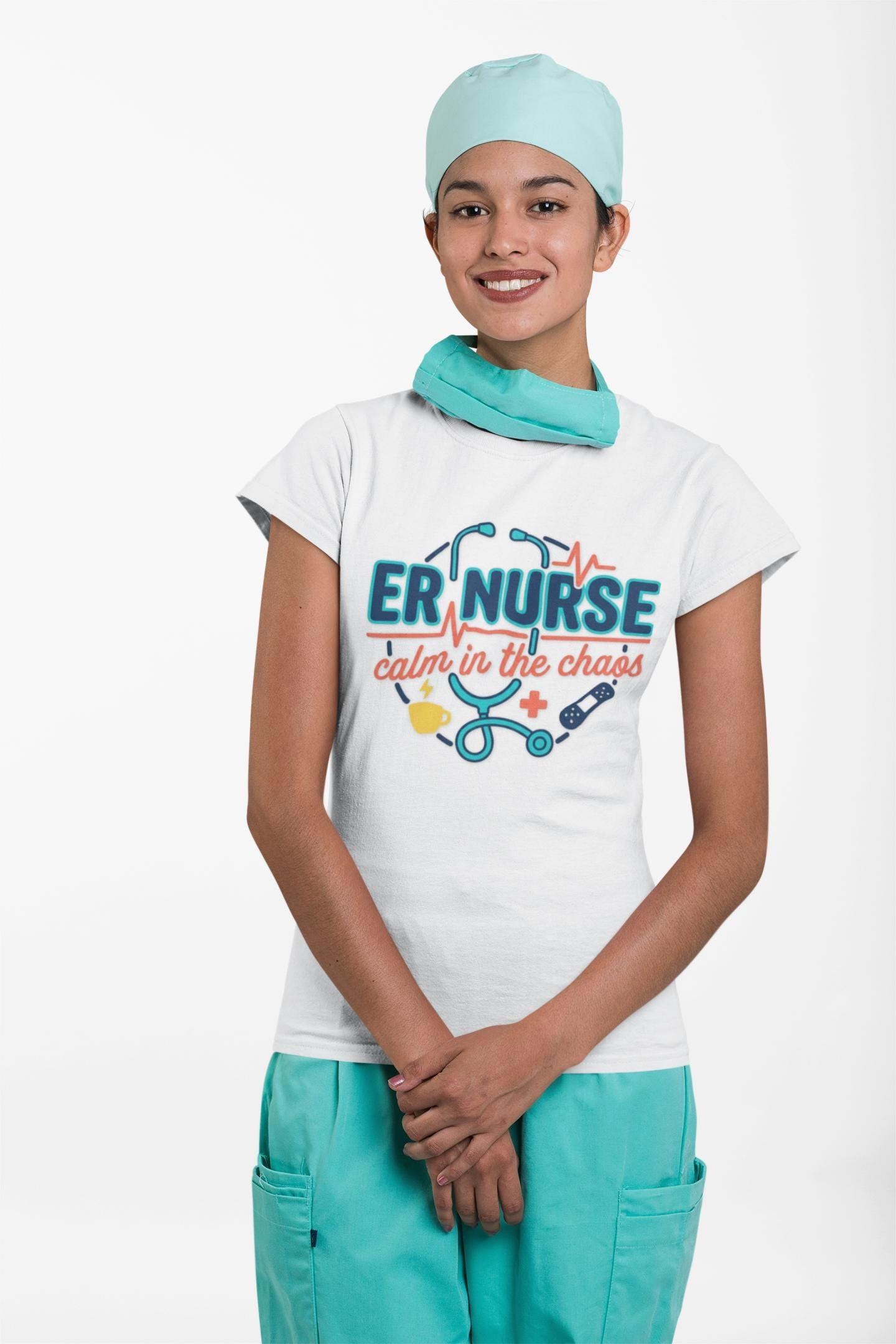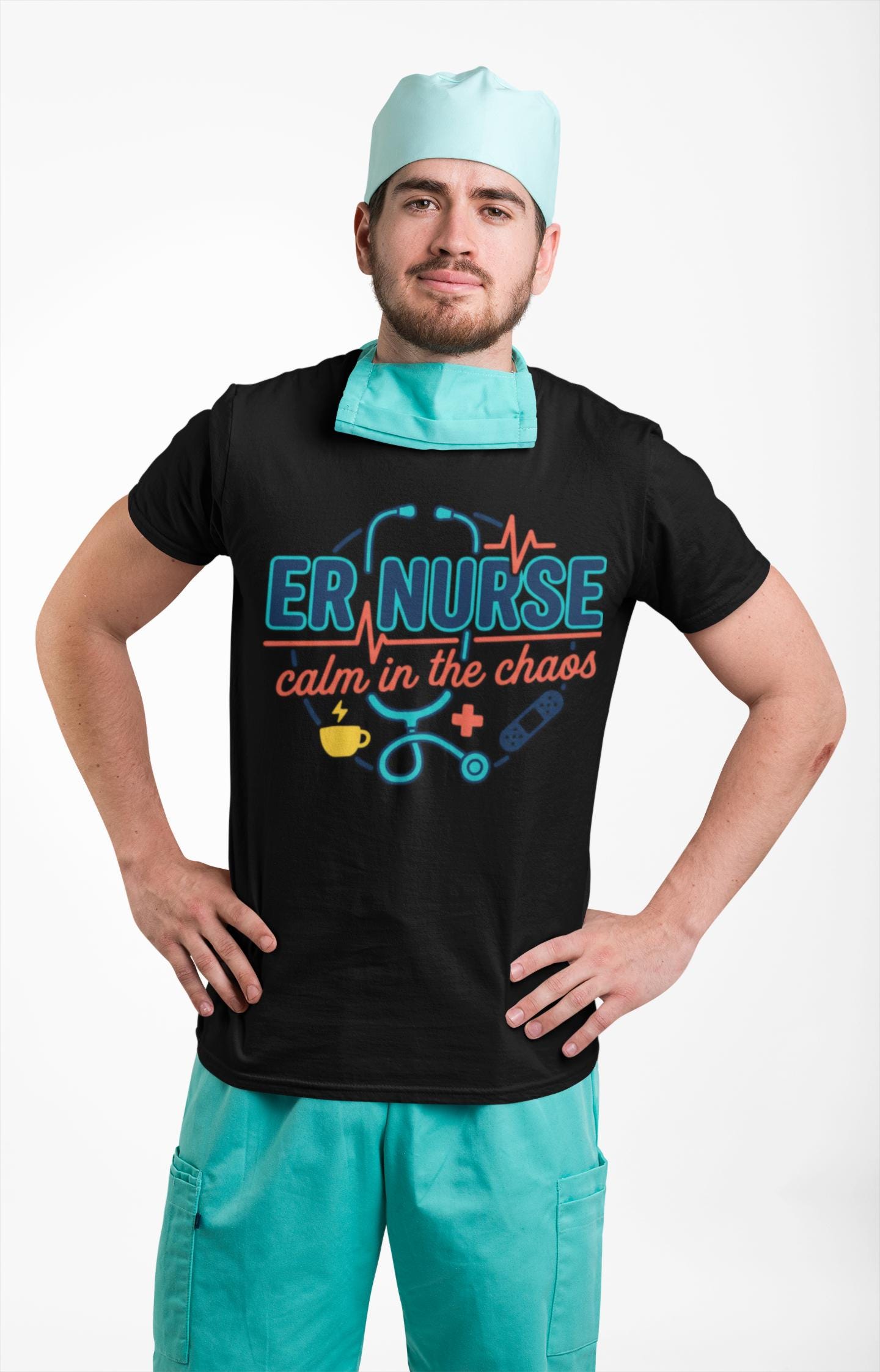 You move through the ER with quiet focus. This tee carries that calm — a simple stethoscope line and the words “calm in the chaos” that nod to long shifts, steady hands, and a heartbeat that refuses to race. It sits light against your skin so you can layer it under scrubs or wear it on days off. The crew neck stays neat, the side seams keep the shape after dozens of washes, and the printed label and sleeve details sit smooth and soft so nothing distracts from the work at hand. Wear it between charting and rounds, at late-night coffee runs, or when you finally collapse on the couch; it reads like a small badge of steady presence for anyone who knows what an ER shift really feels like.
