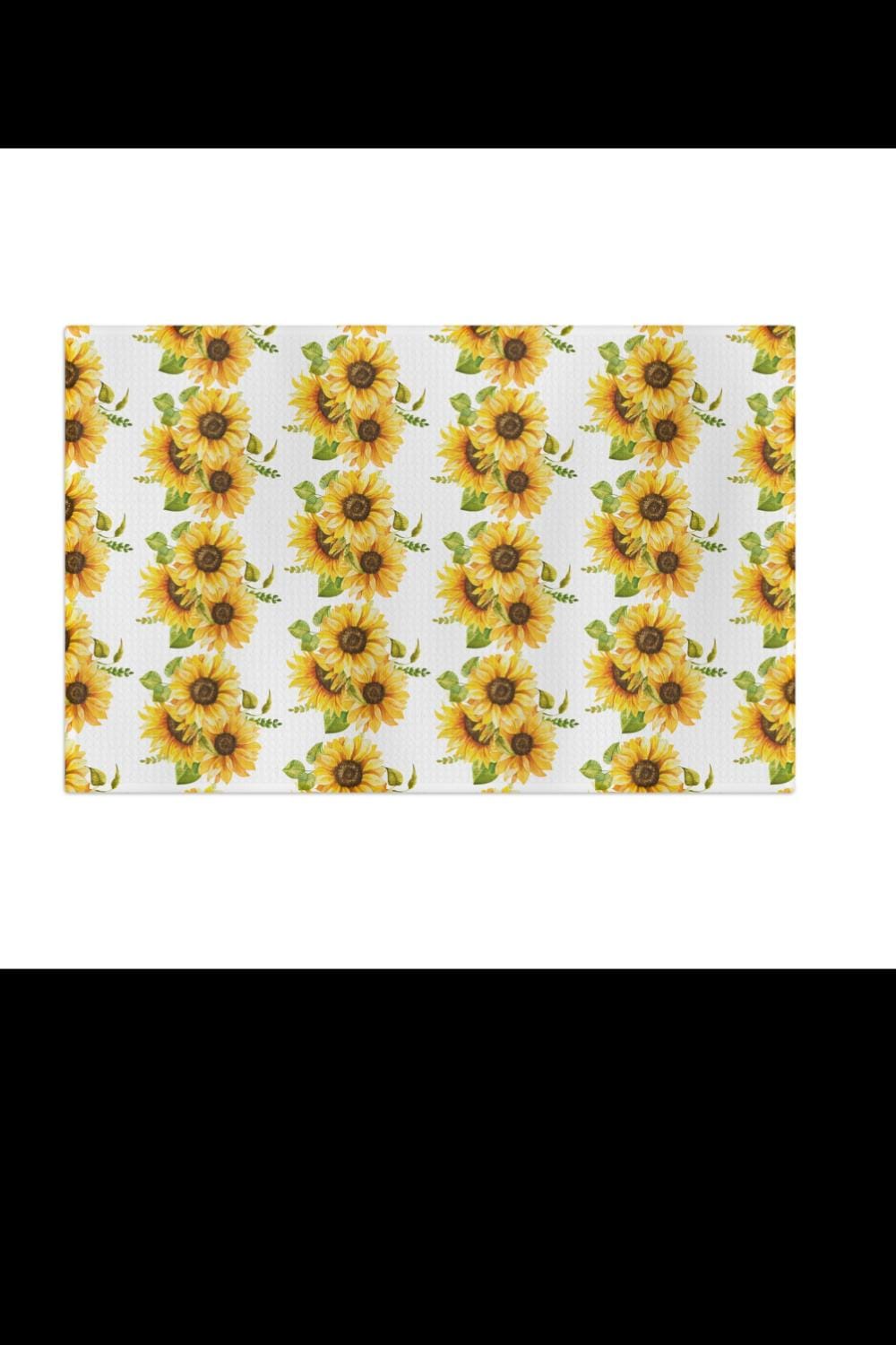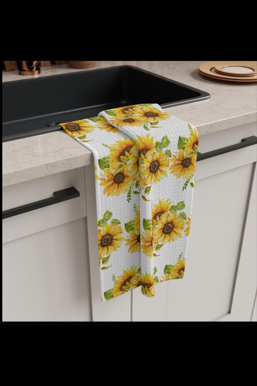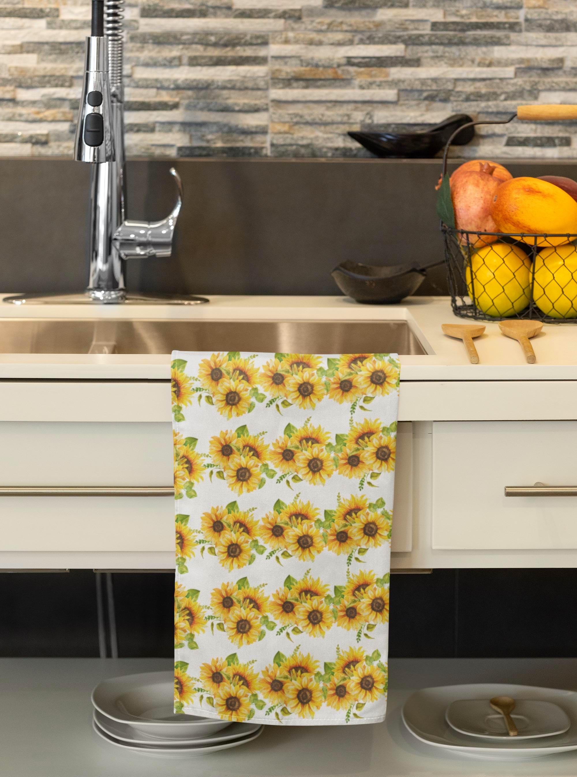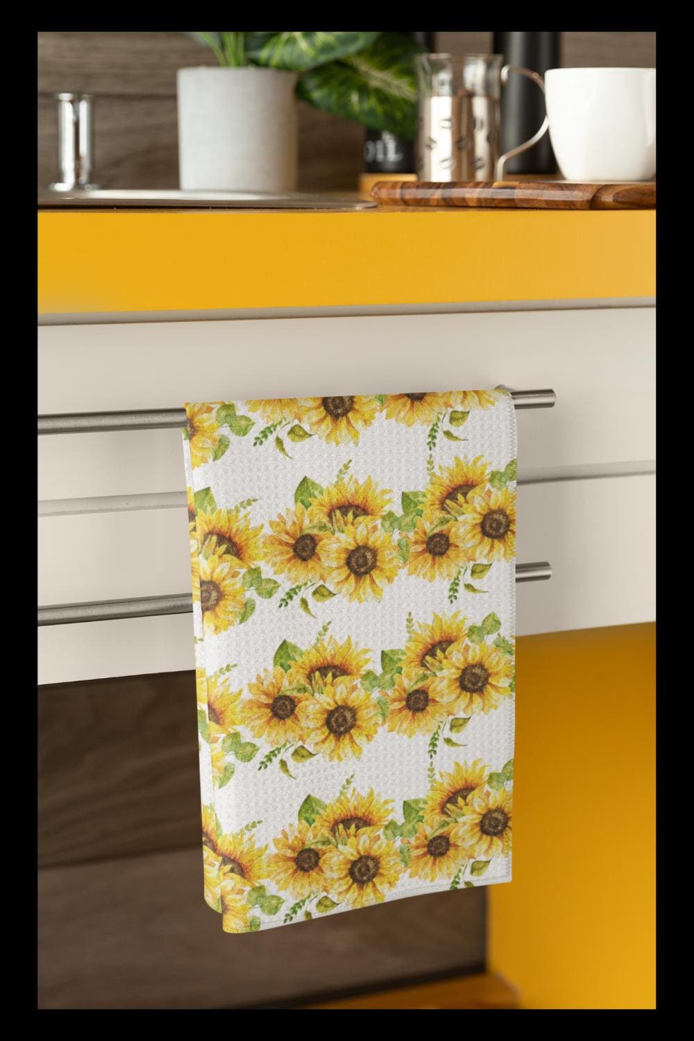 Yellow Sunflower Pattern Tea Towel | Floral Kitchen Decor Microfiber