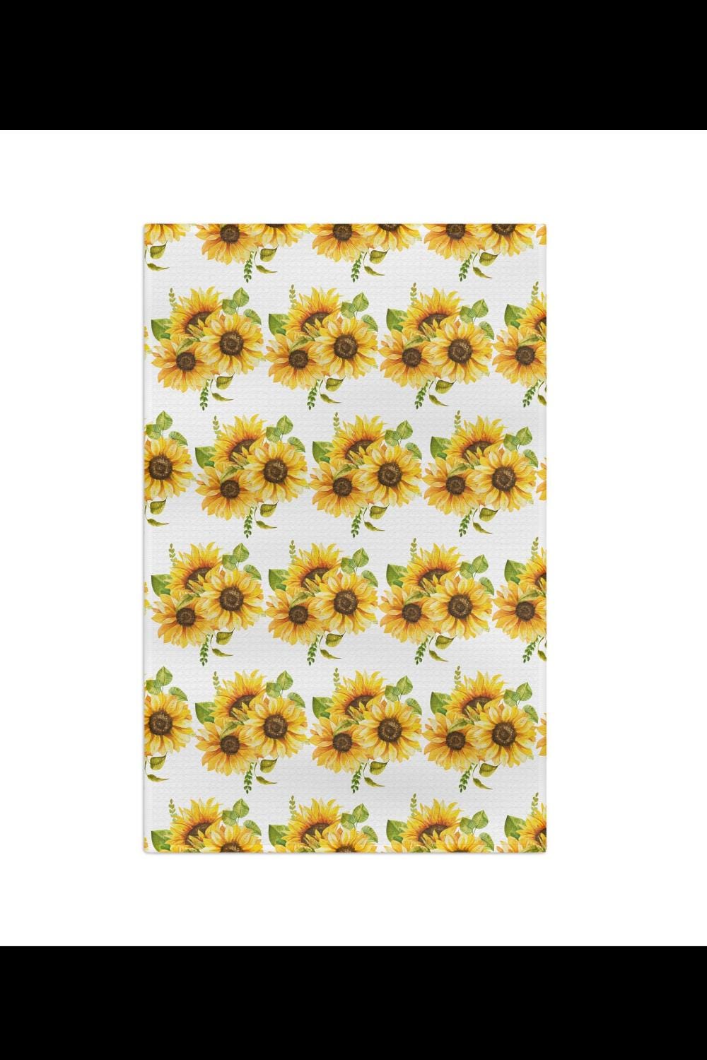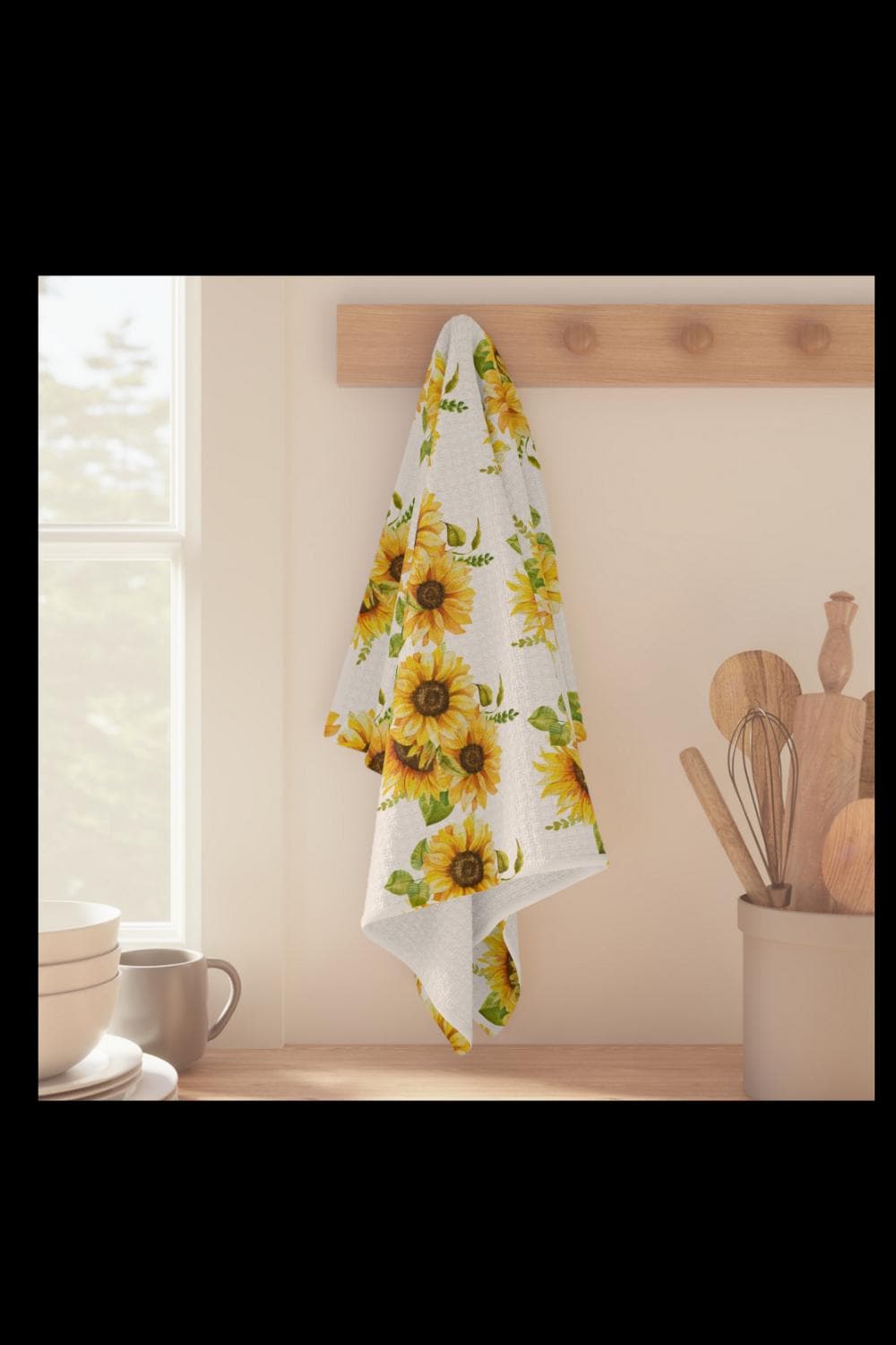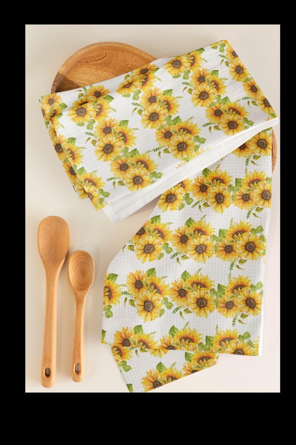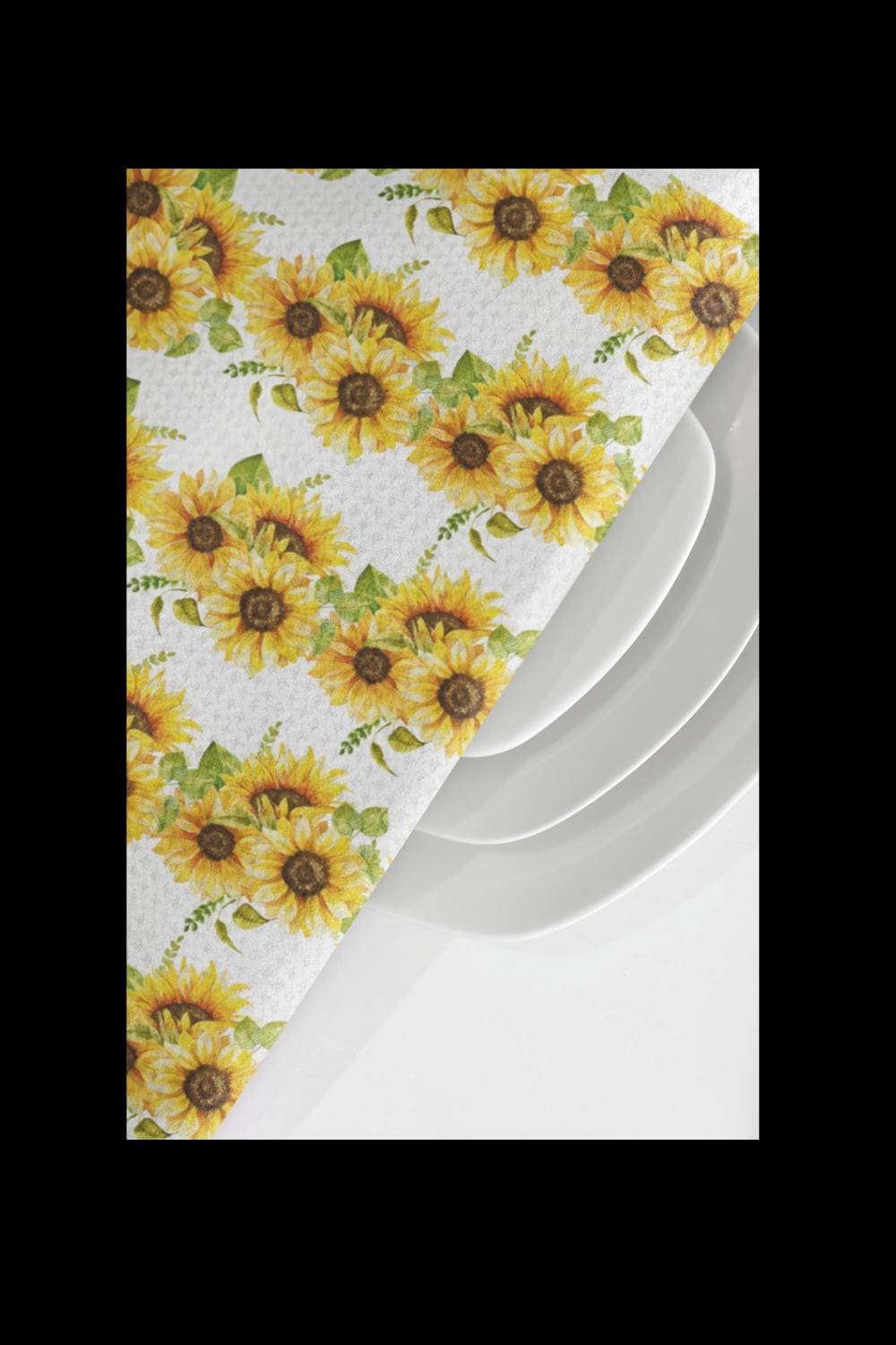 Yellow Sunflower Pattern Tea Towel | Floral Kitchen Decor Microfiber