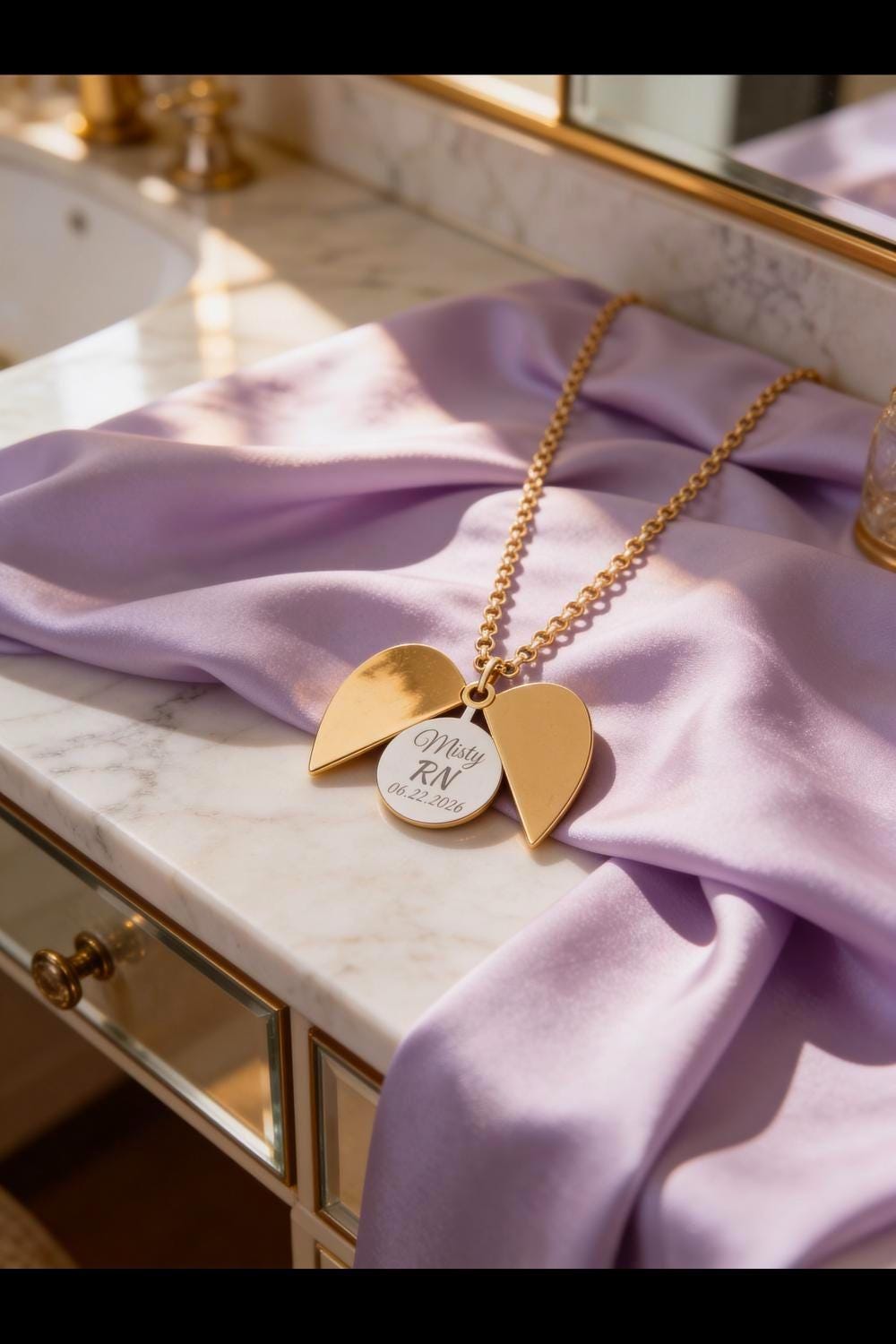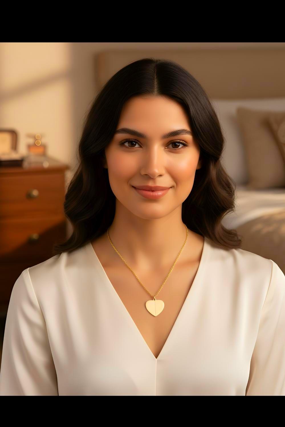 A delicate heart-shaped pendant that hides a tiny engraved message inside — a quiet secret carried close to the chest. The heart splits open to reveal a 20mm hidden circle, laser-etched with a crisp, permanent engraving that resists fading. Lightweight yet sturdy, the pendant and chain are crafted from 316L surgical-grade stainless steel with an 18K gold PVD option for a warm, lasting finish. The short chain sits near the collarbone so the hidden note feels intimate and personal. This piece fits into everyday wear as an understated reminder of someone or something meaningful, made to be worn daily without irritation or worry.