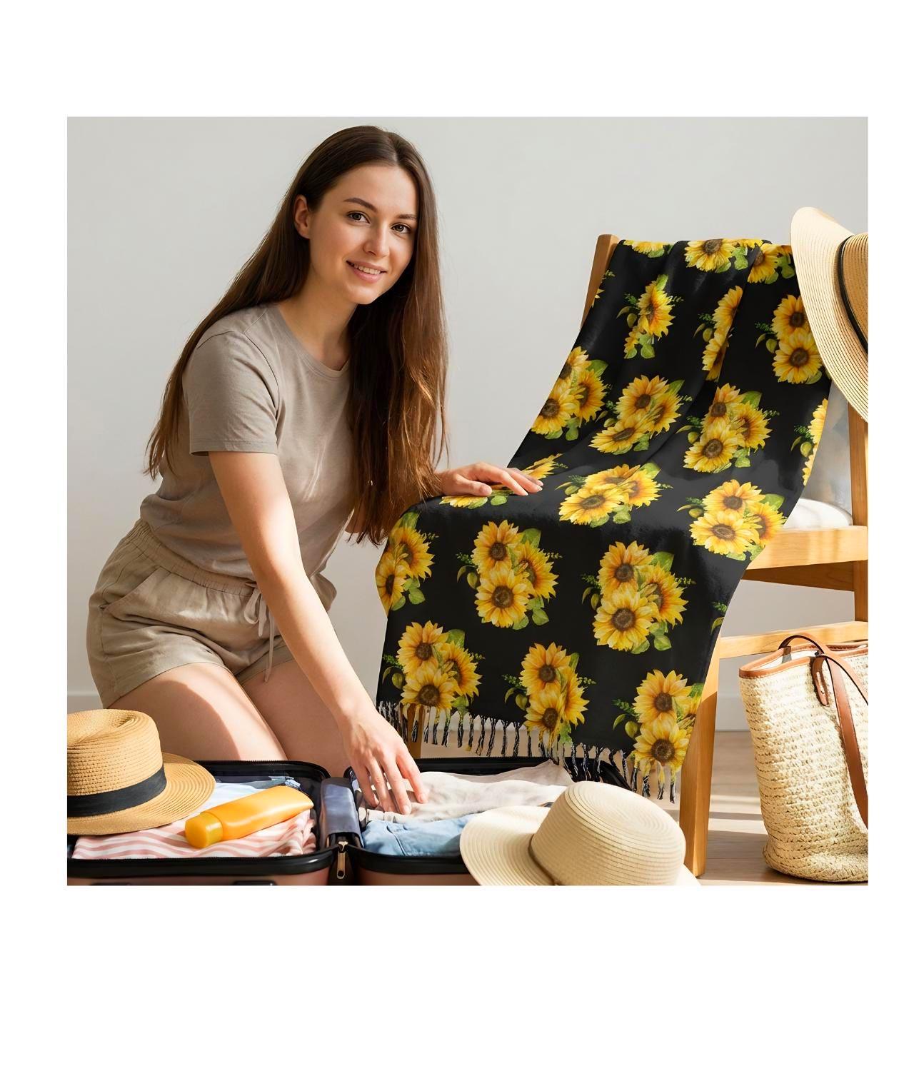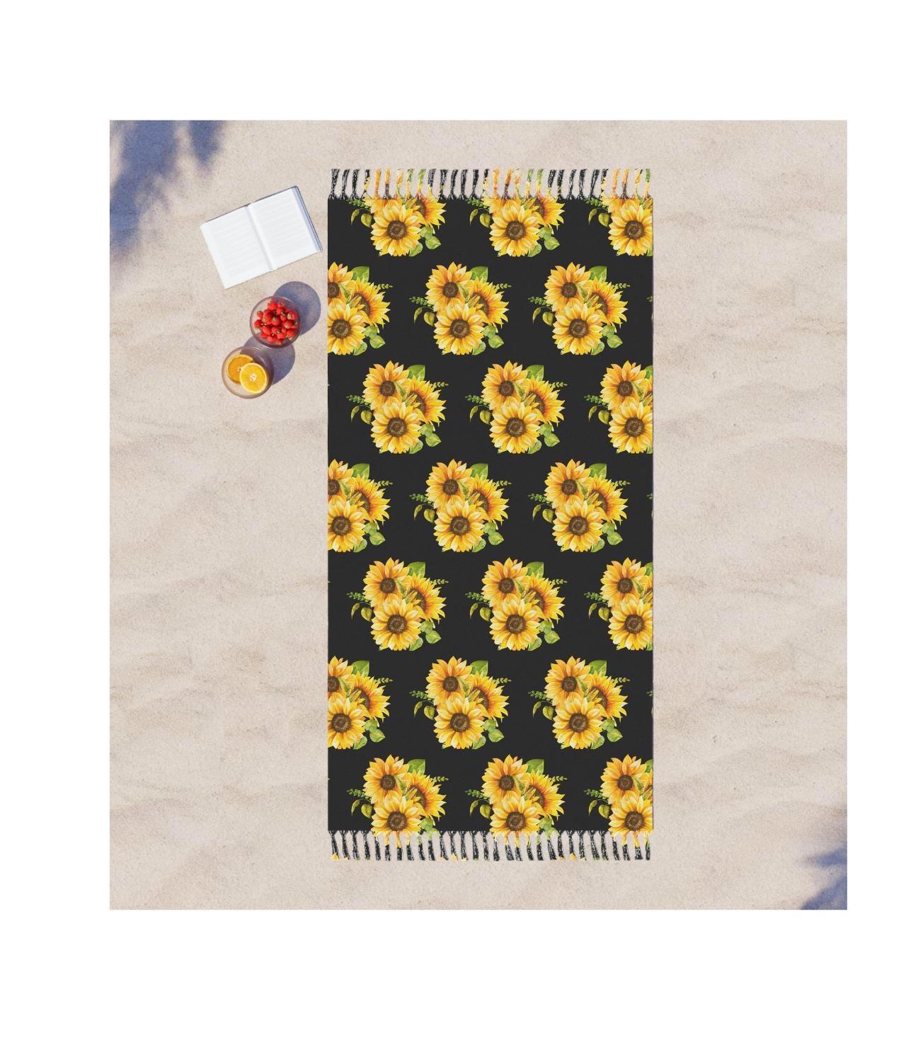 Sunflower Bouquet Beach Towel Blanket | Boho Floral Lightweight Picnic & Beach Throw
