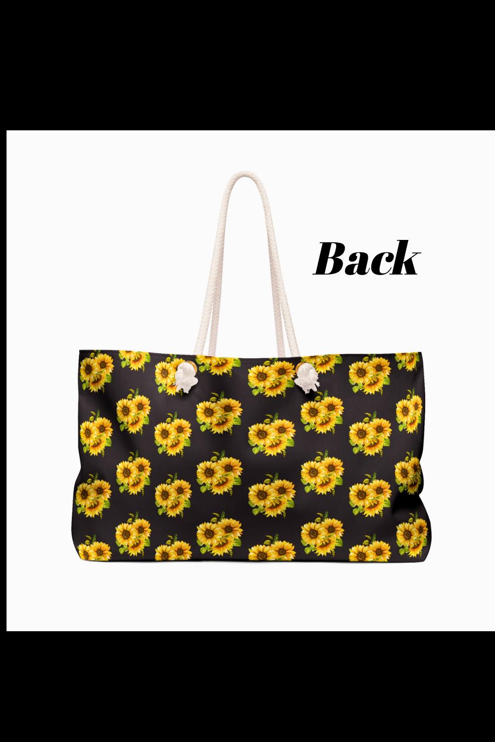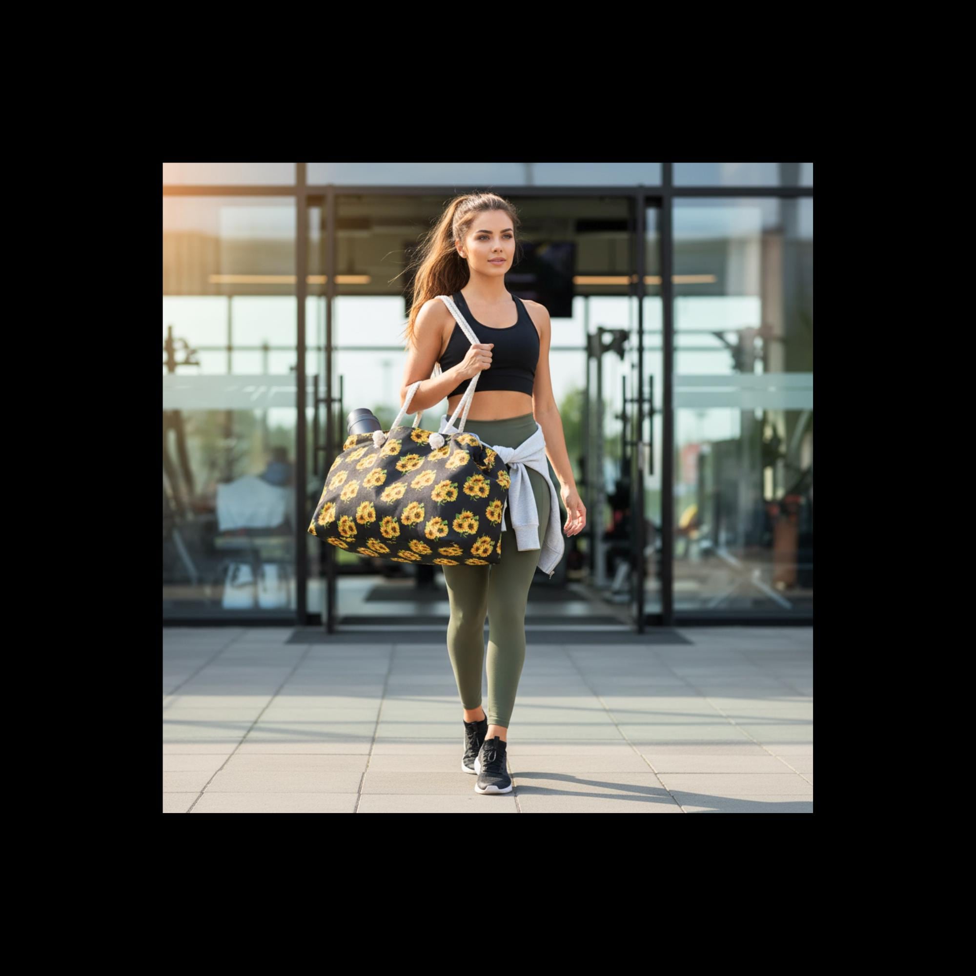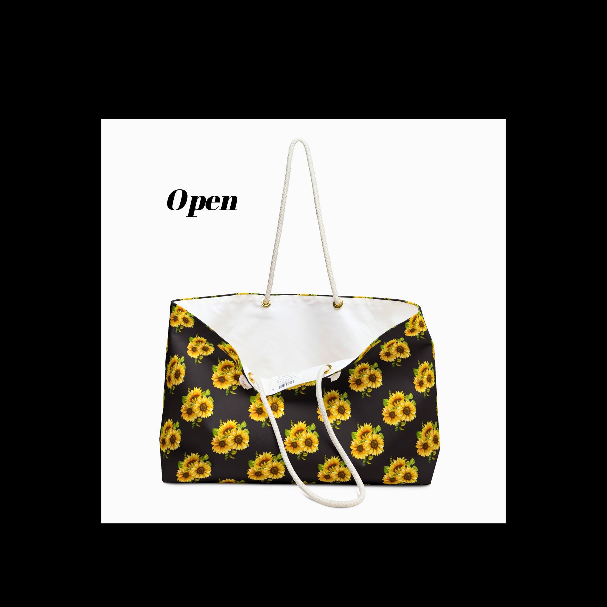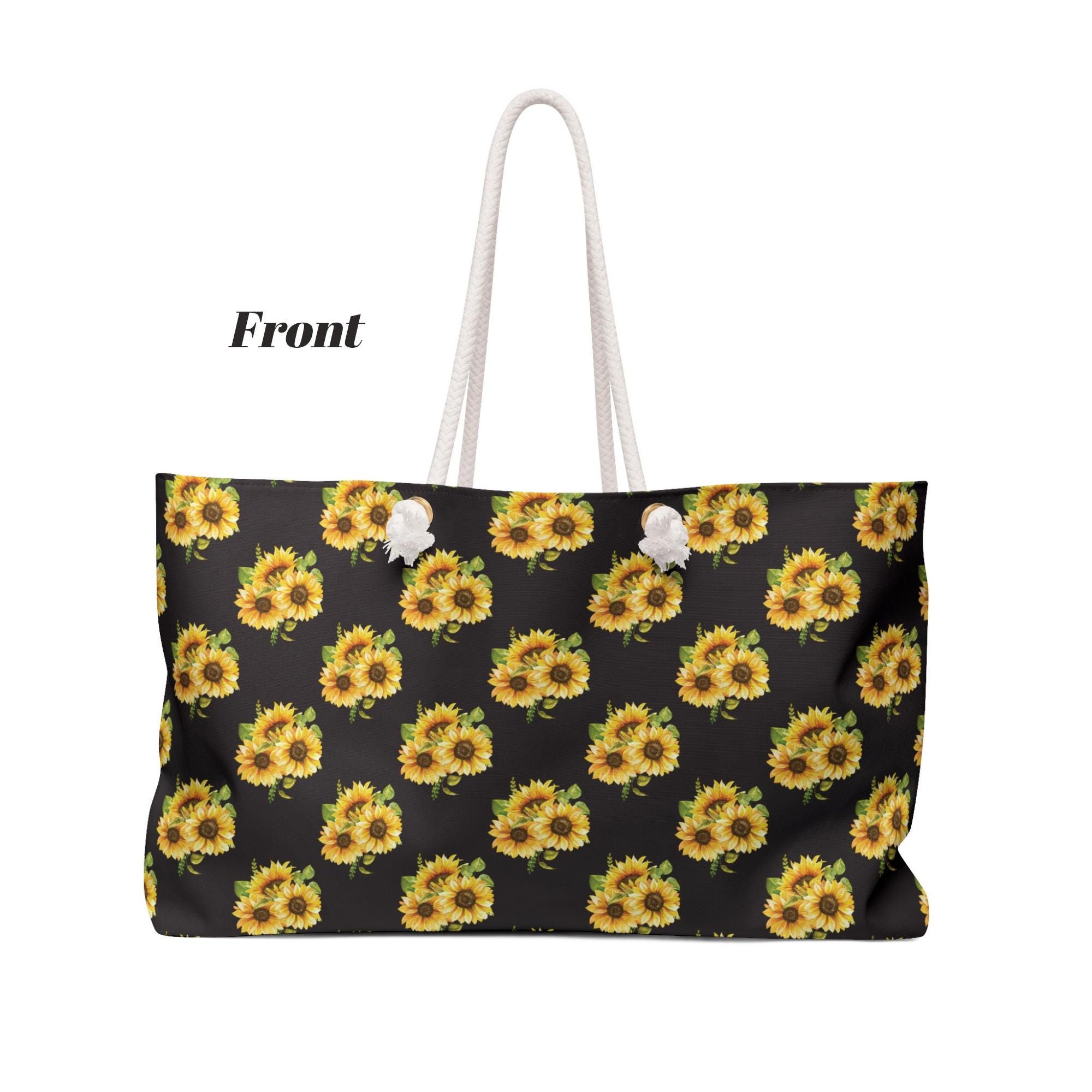 Sunflower Pattern Weekender Bag | Yellow Floral Tote, Summer Beach Bag