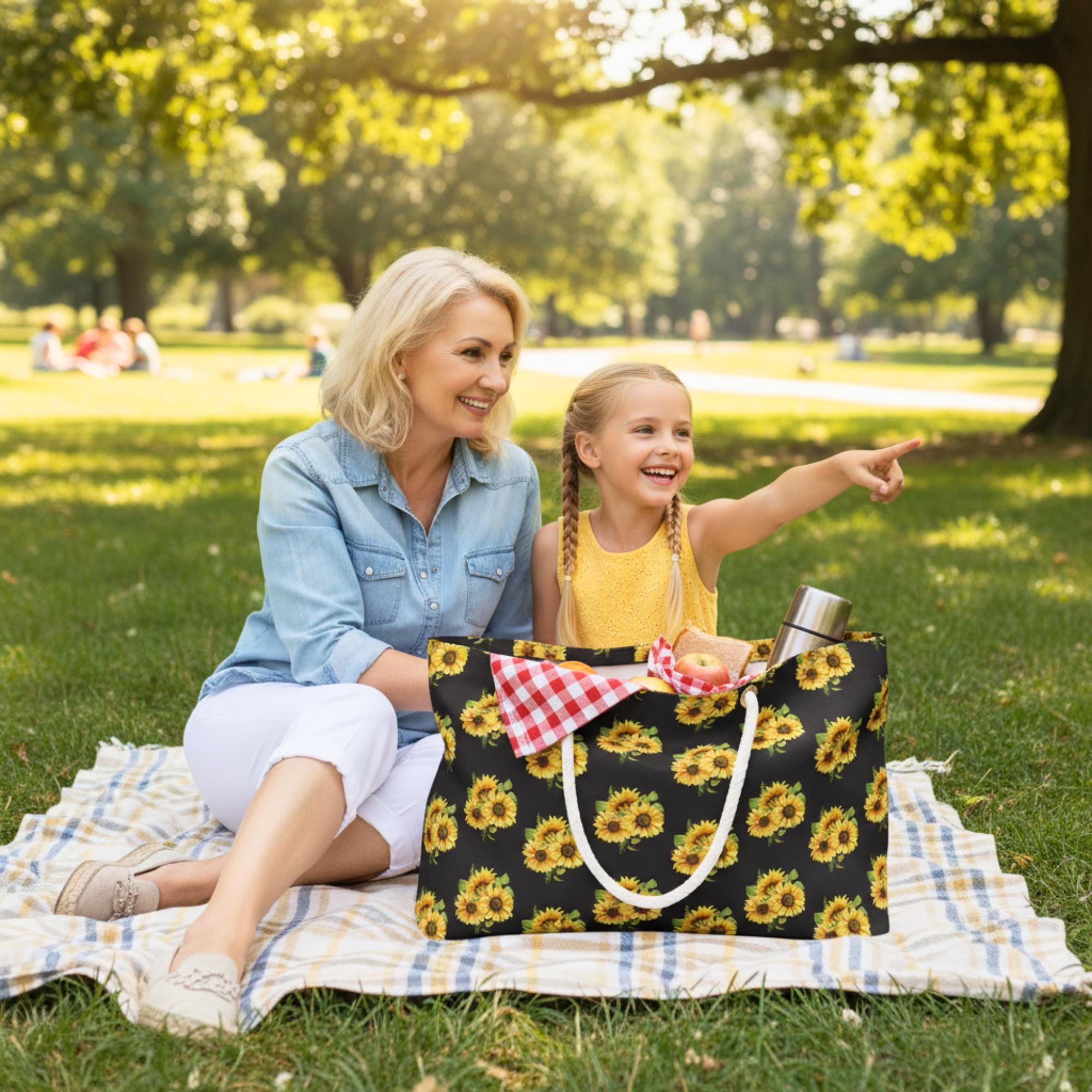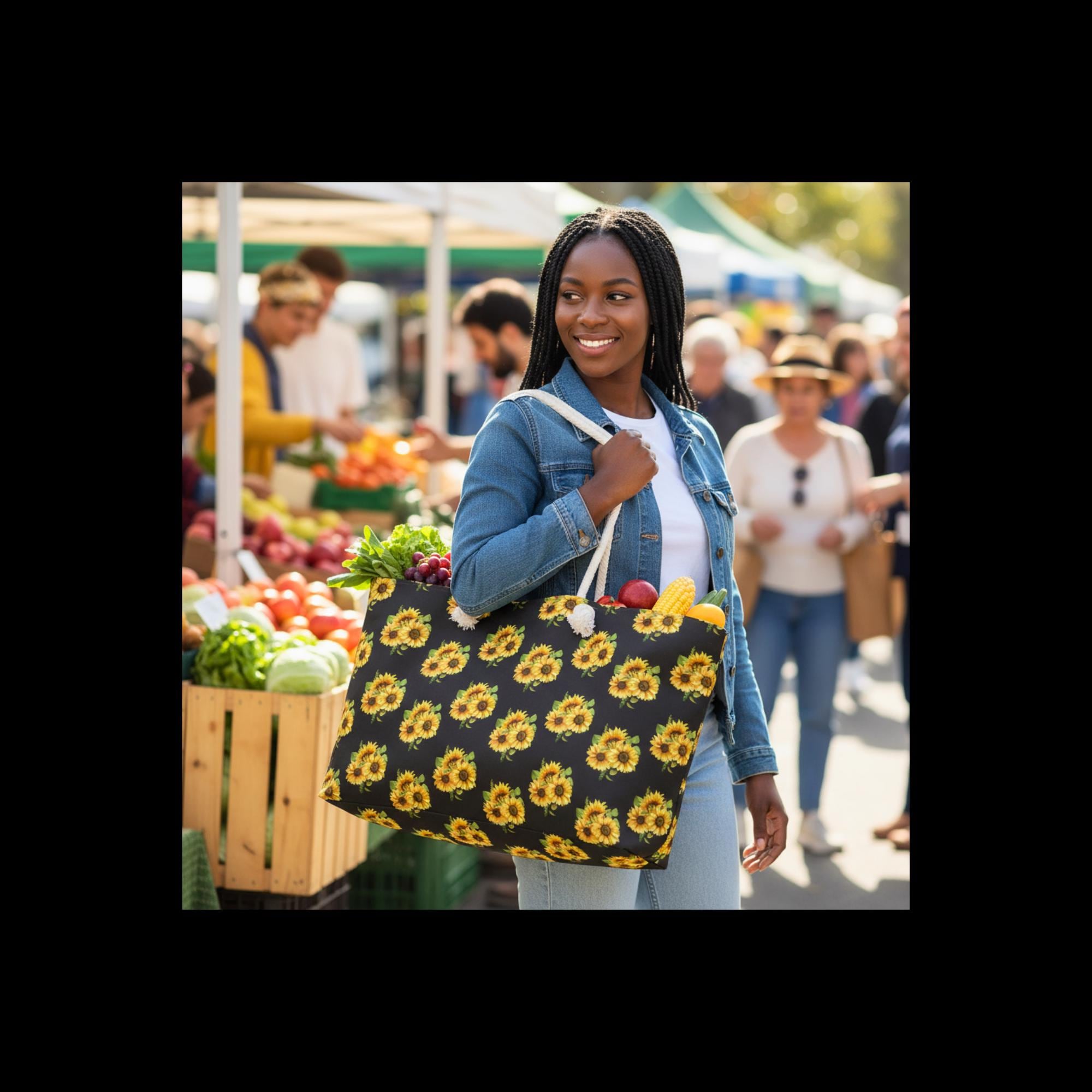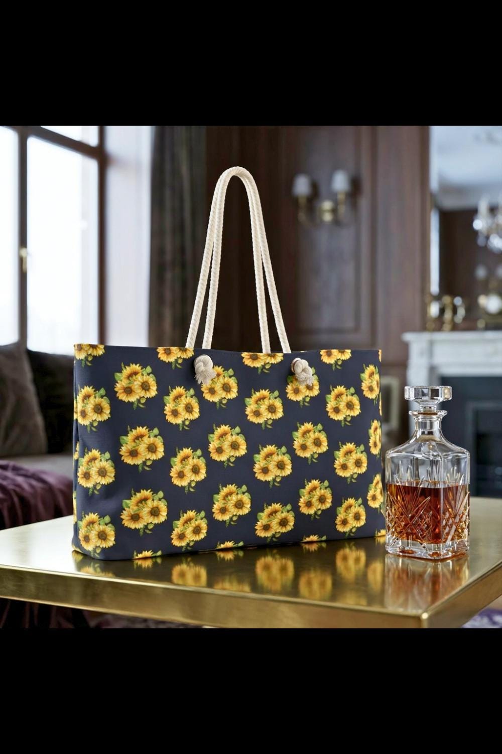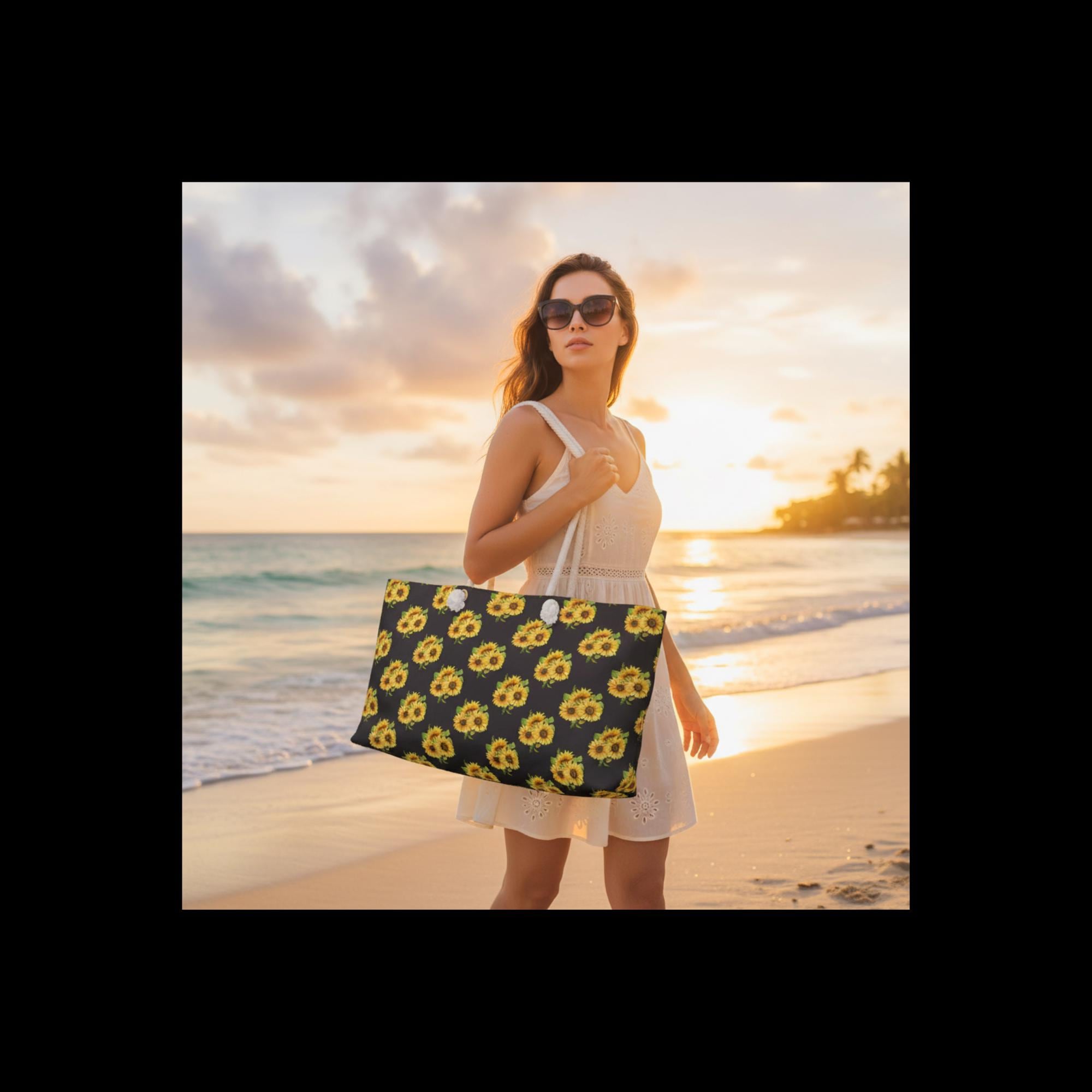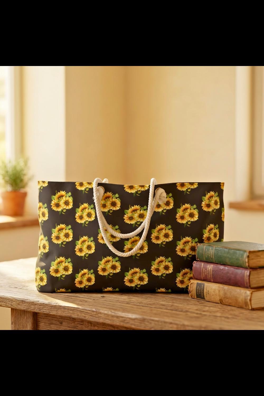 Sunflower Pattern Weekender Bag | Yellow Floral Tote, Summer Beach Bag